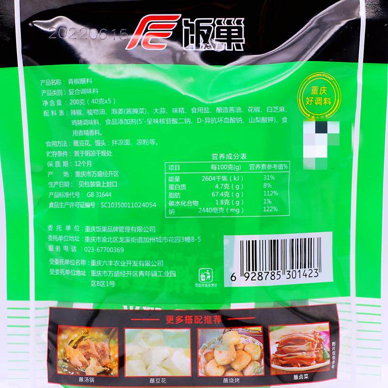 📚 重庆饭巢青椒蘸料200克袋红椒多用途蘸水拌馒头剁椒烧椒酱下饭菜