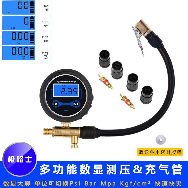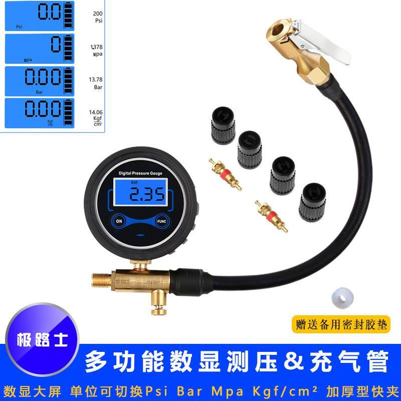 📚 极路士打气机数显延长管 数显胎压计汽车轮胎胎压计自行车测压表