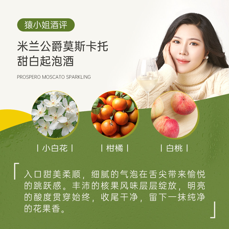 📚 明星同款Moscato小甜水 西班牙米兰公爵莫斯卡托甜白起泡葡萄酒