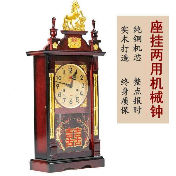 📚 机械座钟老式上弦链发条纯铜机芯台钟实木报时客厅中式机械挂钟表