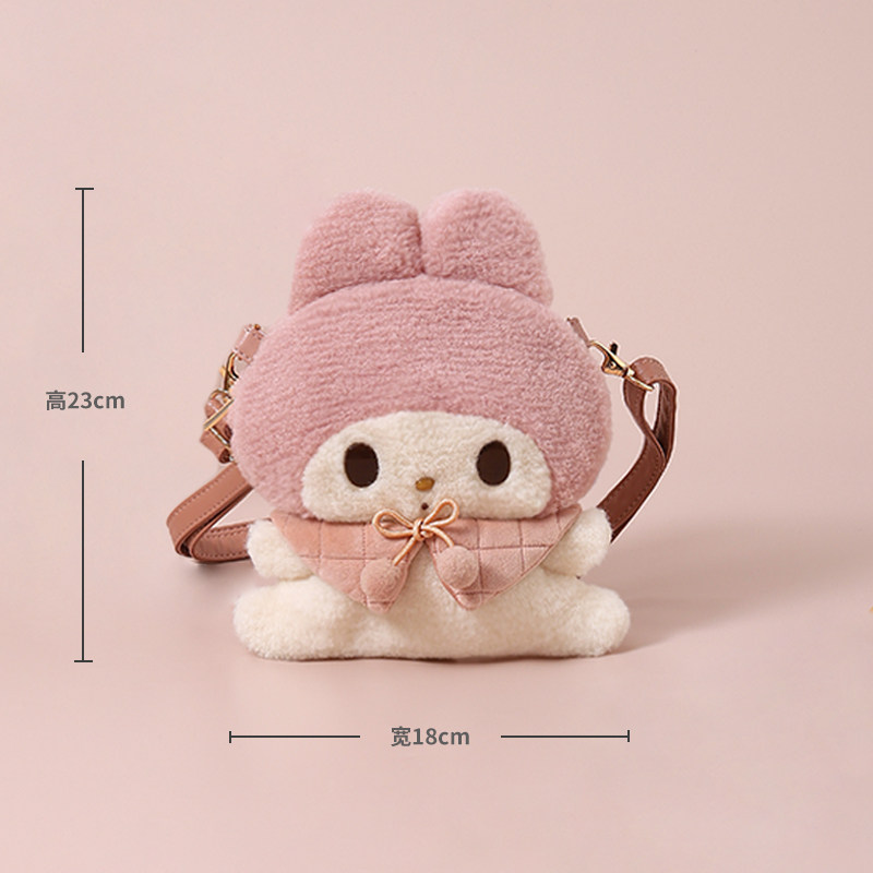 📚 日本三丽鸥周边正版一字马美乐蒂毛绒单肩包斜挎包女生可爱小包包