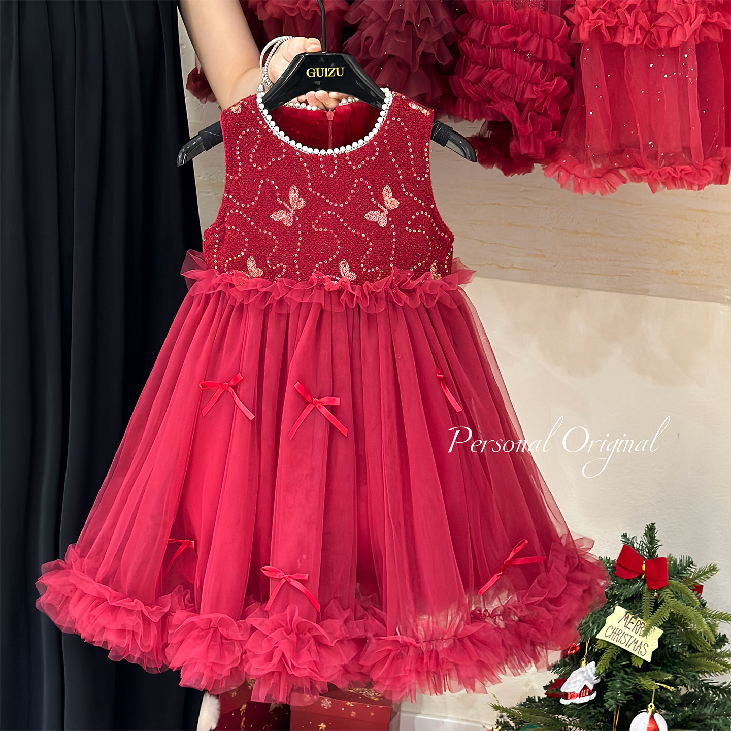📚 女童红色连衣裙冬装2025新款儿童高端蓬蓬纱公主裙加绒拜年服裙子