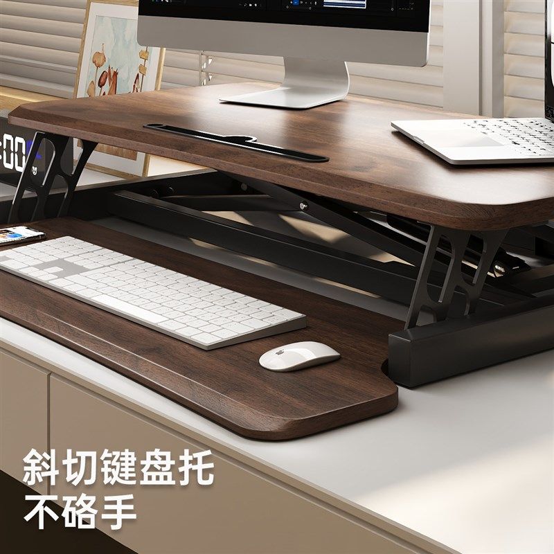 📚 升降桌站立式办公电脑桌面台式增高架可折叠桌子实木站立式工作台