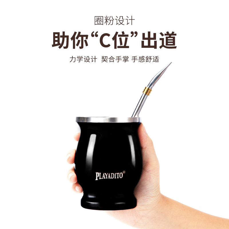 📚 阿根廷马黛茶杯 梅西同款专用杯送吸管304不锈钢茶具隔热敞口杯子