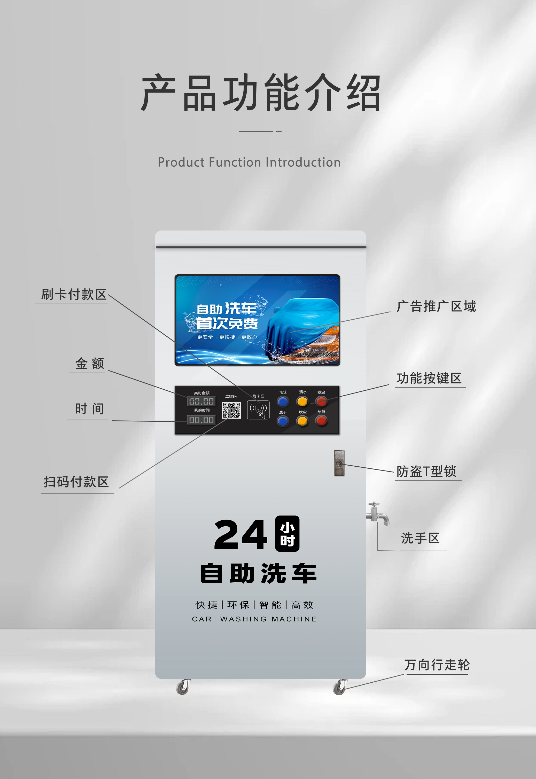 📚 自助洗车机共享洗车商用便民24小时扫码刷卡超高压泡沫一体洗车机