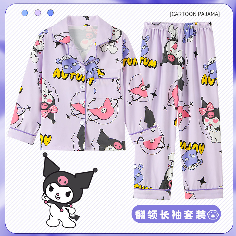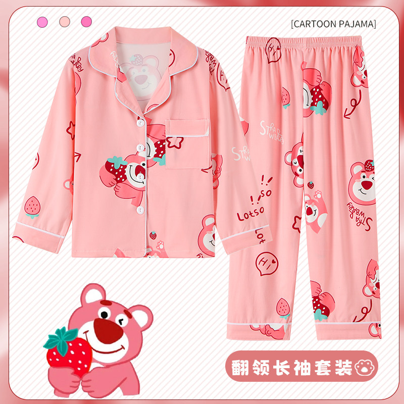 📚 儿童睡衣春秋长袖薄款男女童三眼仔翻领家居卡通可爱超萌宝宝套装