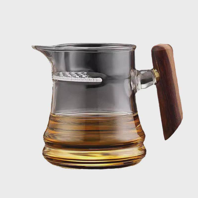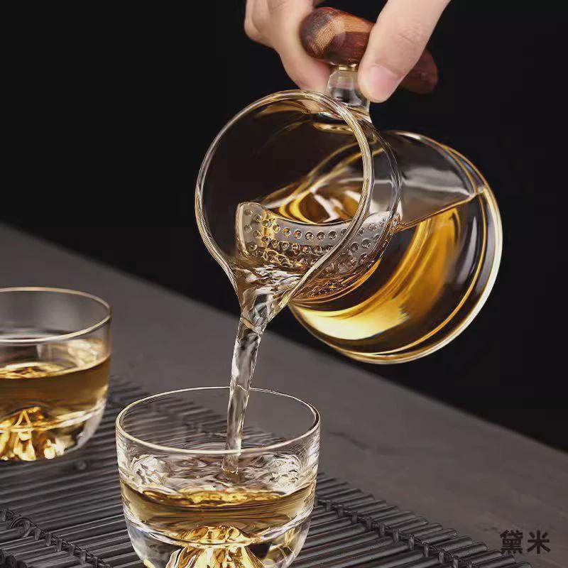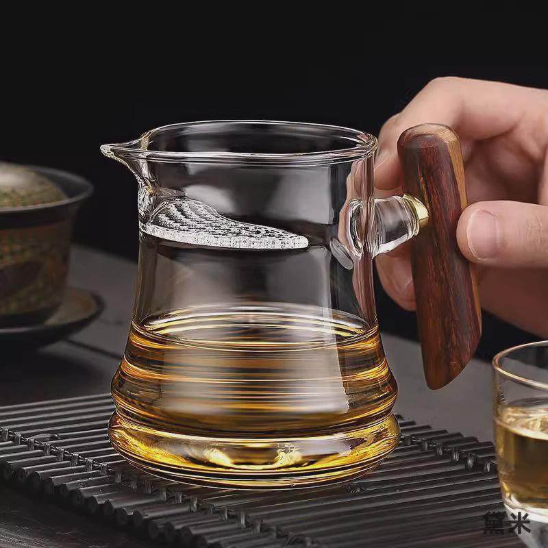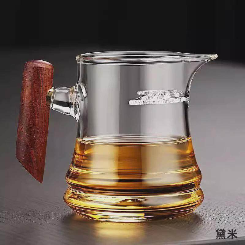 📚 月牙茶具高硼硅耐高温透明茶水分离木把公道杯茶漏一体玻璃分茶
