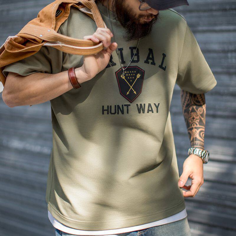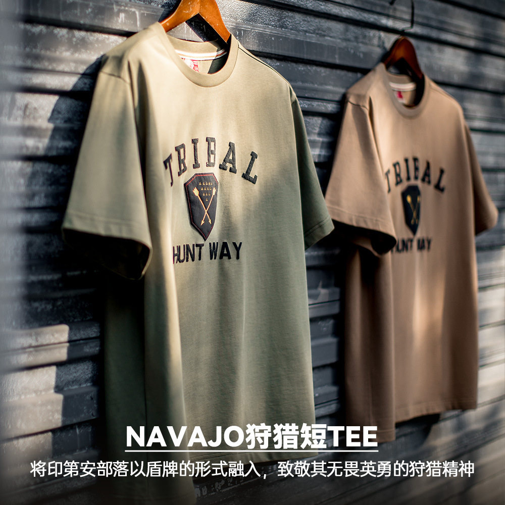 📚 马登工装美式复古Navajo发泡印花印第安短袖T恤男纯棉宽松上衣夏