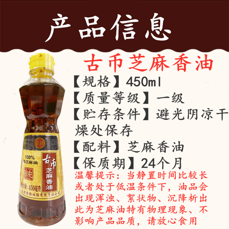 📚 正品包邮古币纯芝麻香油450ml芝麻压榨腌制烧烤火锅蘸料家用调料