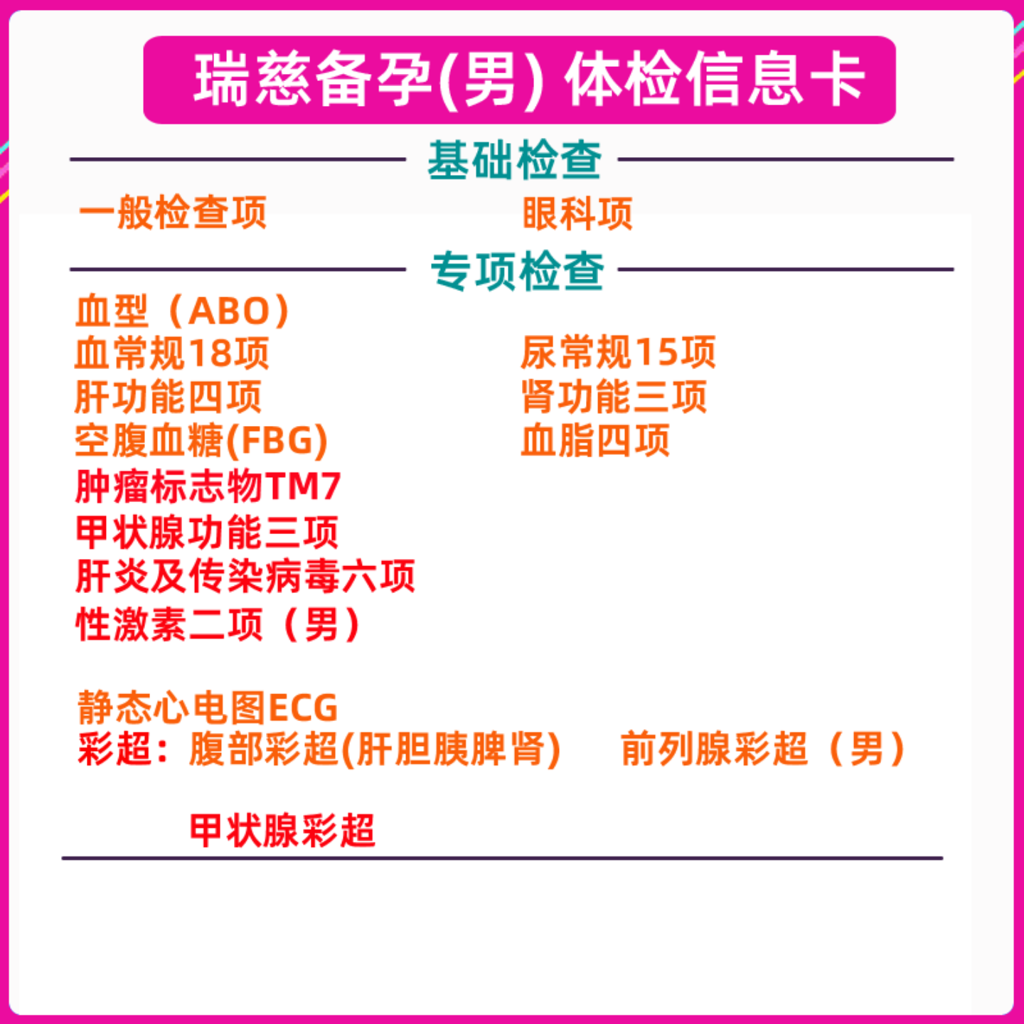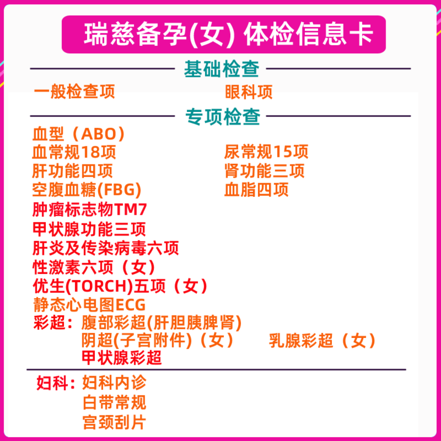 📚 瑞慈体检套餐孕前检查男女备孕体检卡优生优育性激素甲状腺检查