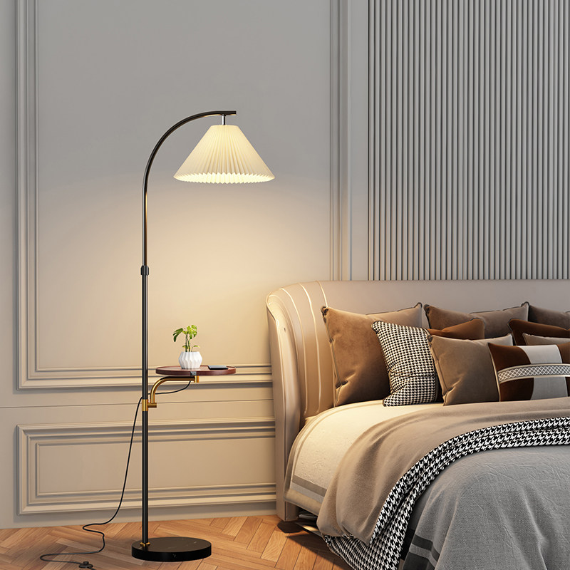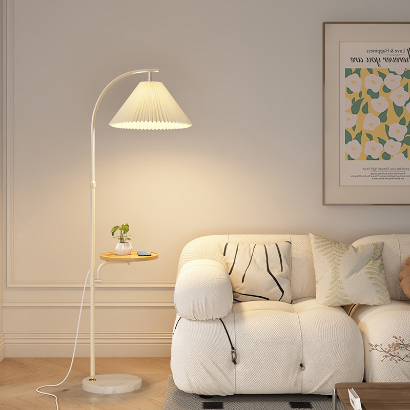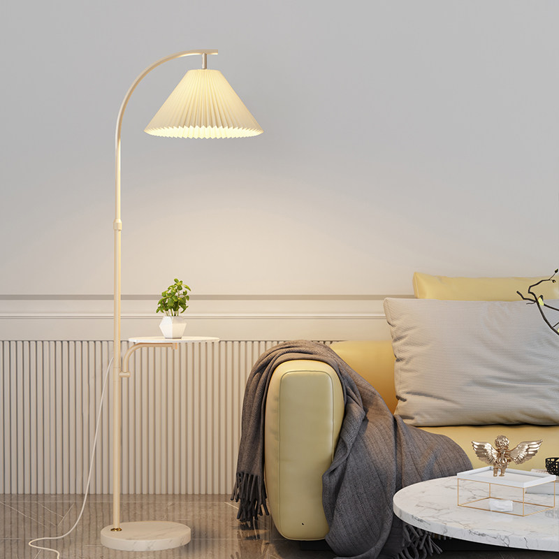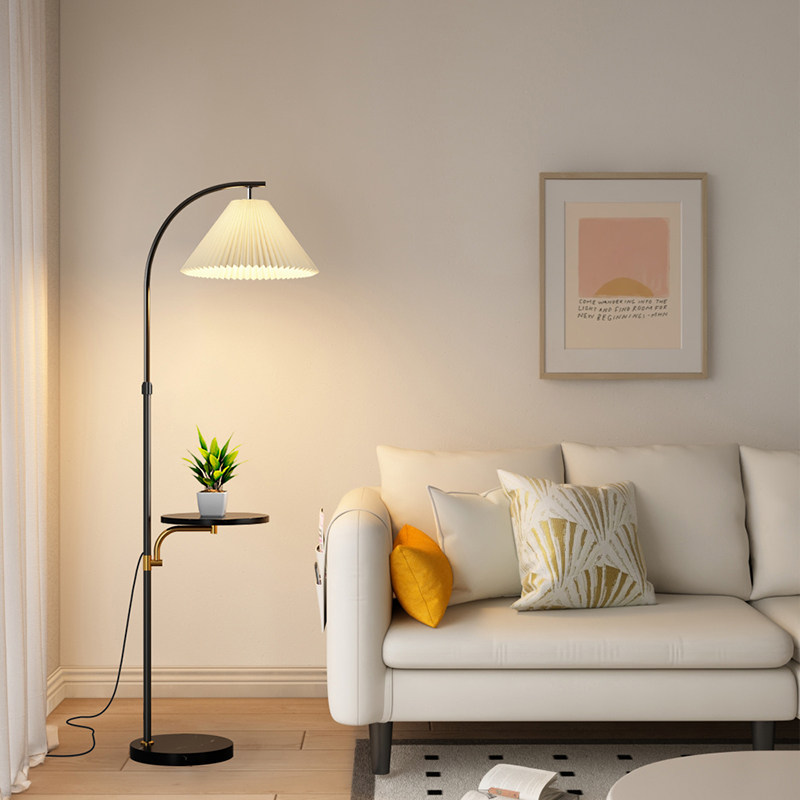 📚 ?北欧落地灯客厅置物茶几沙发灯卧室床头立式一体台灯百褶氛围地