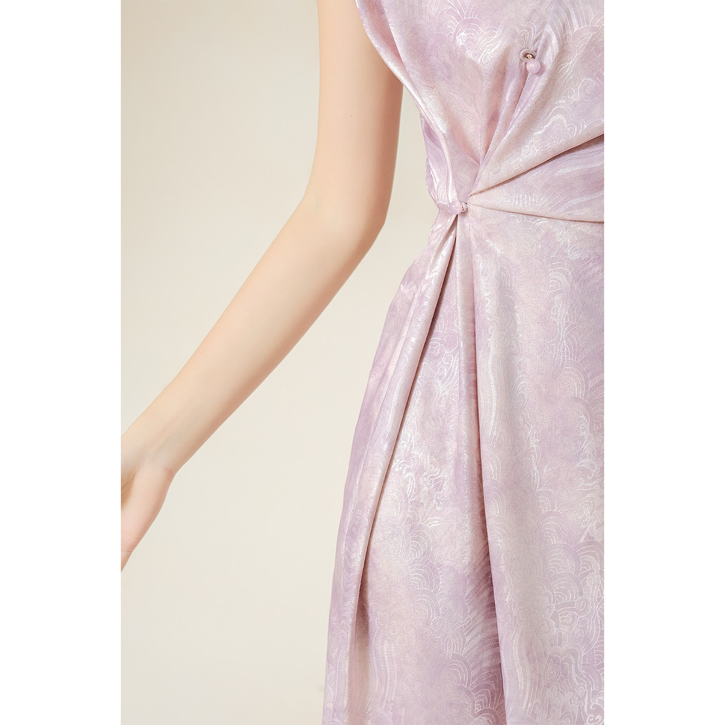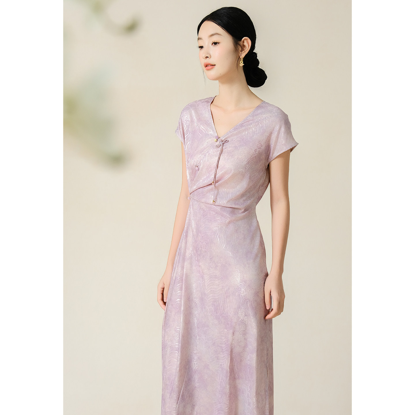 📚 SHIBAI拾白 影黛 色织新中式V领女显瘦独特漂亮国风盘扣提花长裙