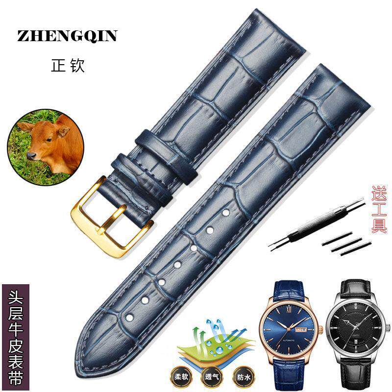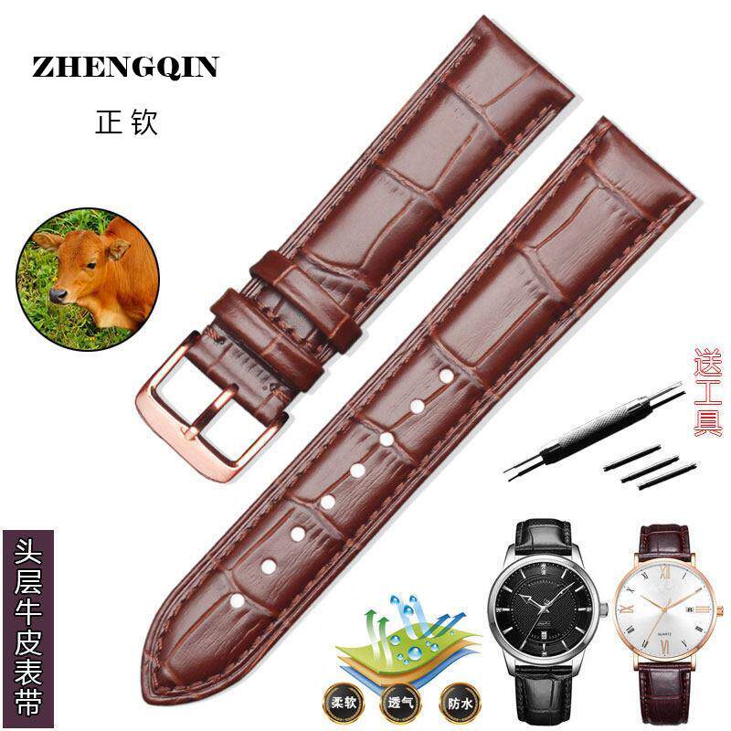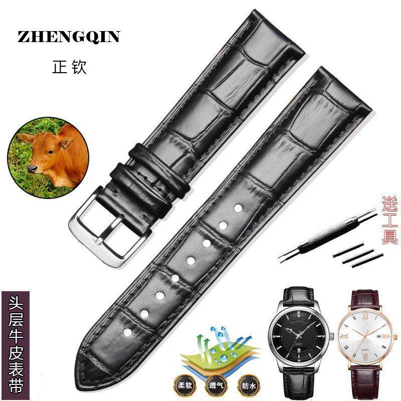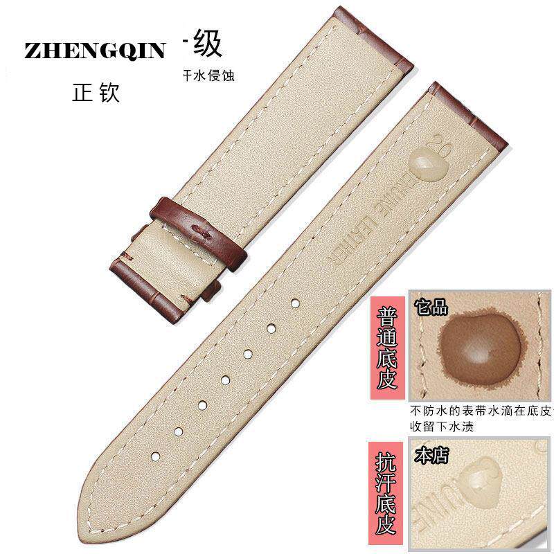 📚 适用老上海牌手表带柔软防水真皮机械表腕表男针扣头层牛皮女表链