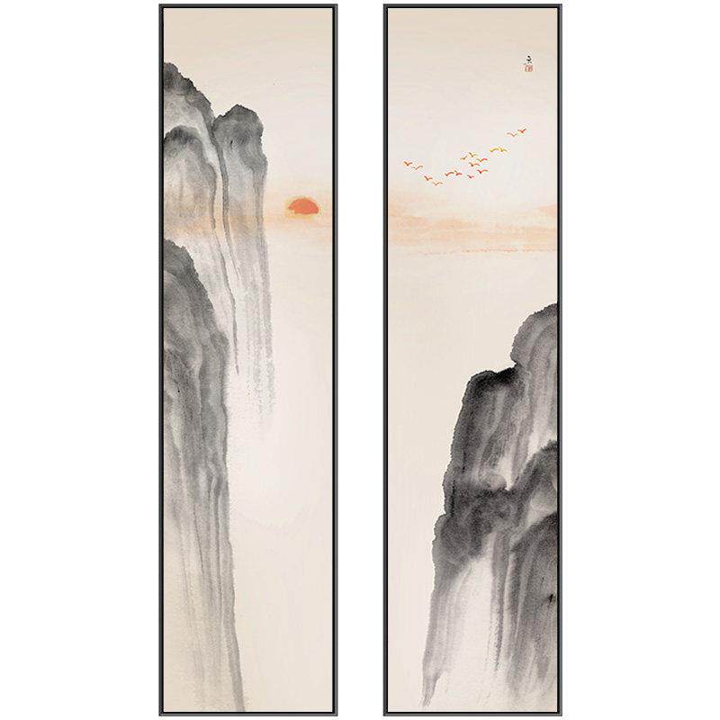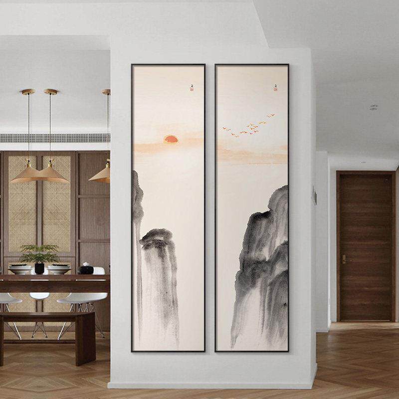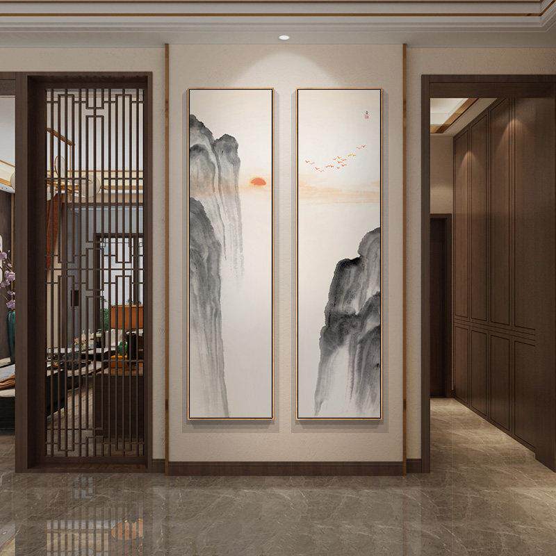 📚 网红新中国风入走过道装饰画楼梯画挂廊垂直茶室禅宗壁山画水口画