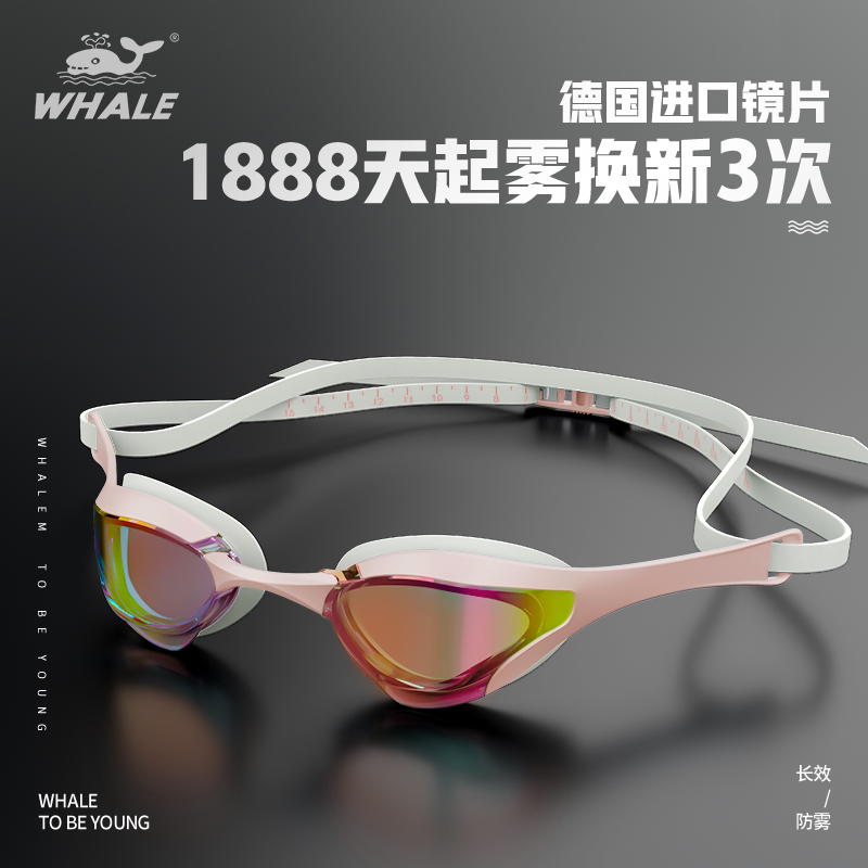 📚 鲸鱼S8虎鲸竞速泳镜1888天起雾换新成人男女防雾高清竞技游泳眼镜