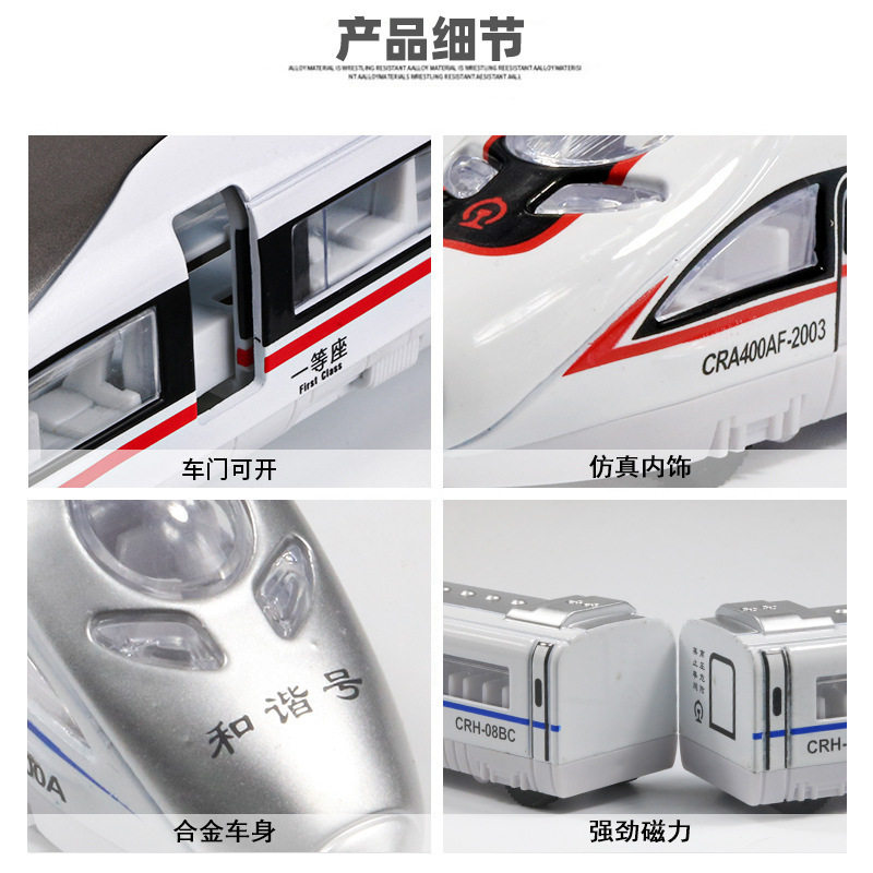 📚 新款盒装复兴号和谐号动车组四节套装开门回力合金车模型儿童玩具