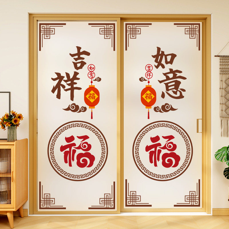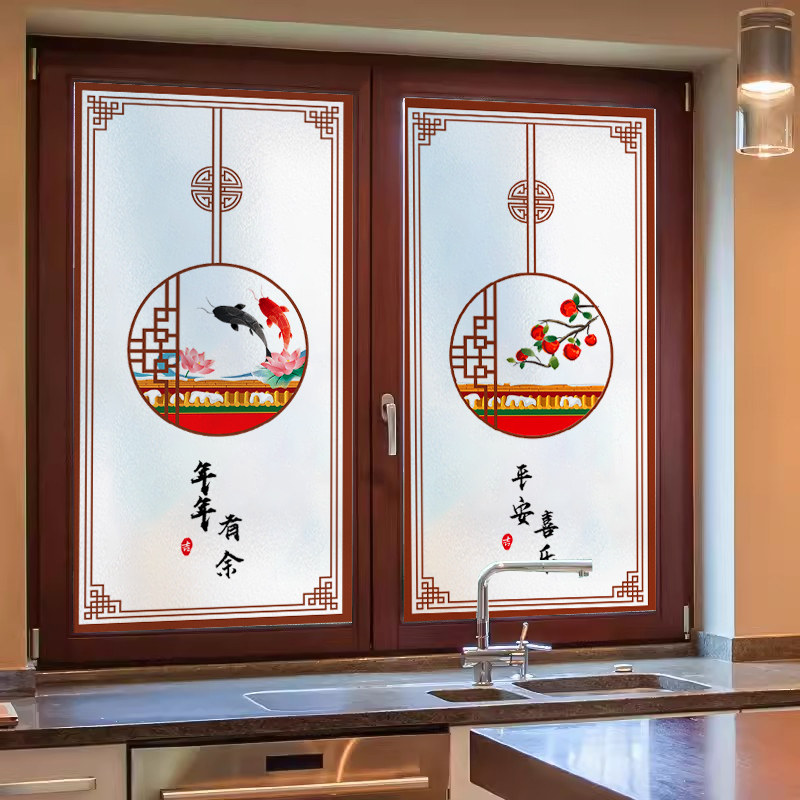 📚 厨房静电磨砂玻璃贴纸透光不透明贴膜阳台窗户贴纸防走光中式古典