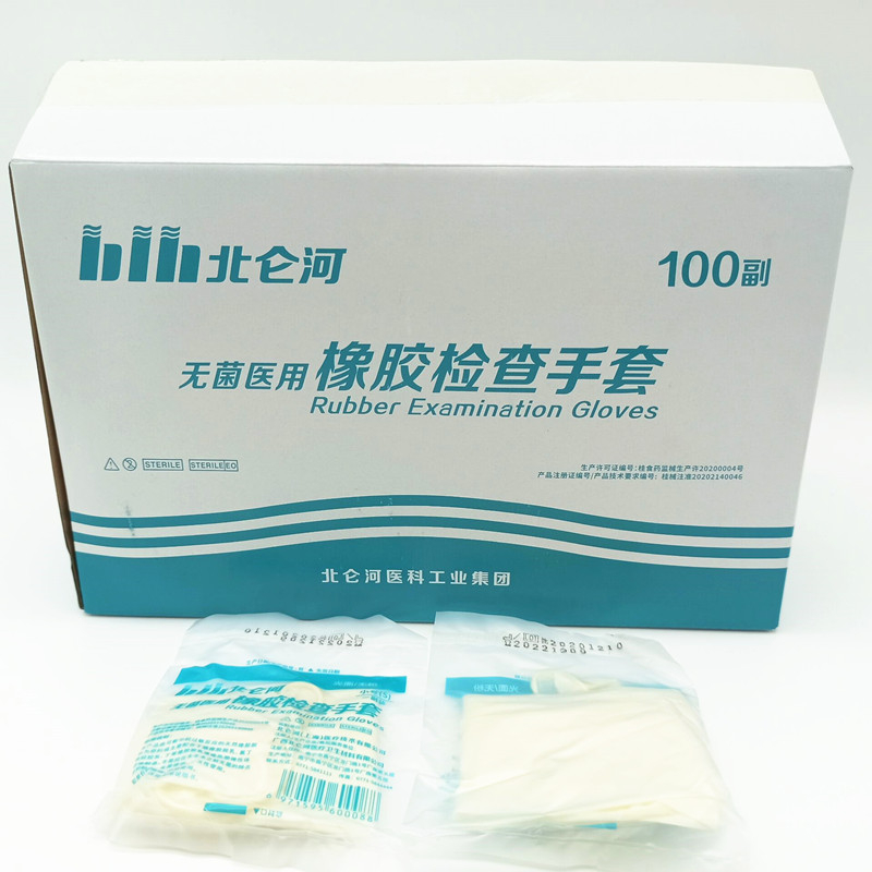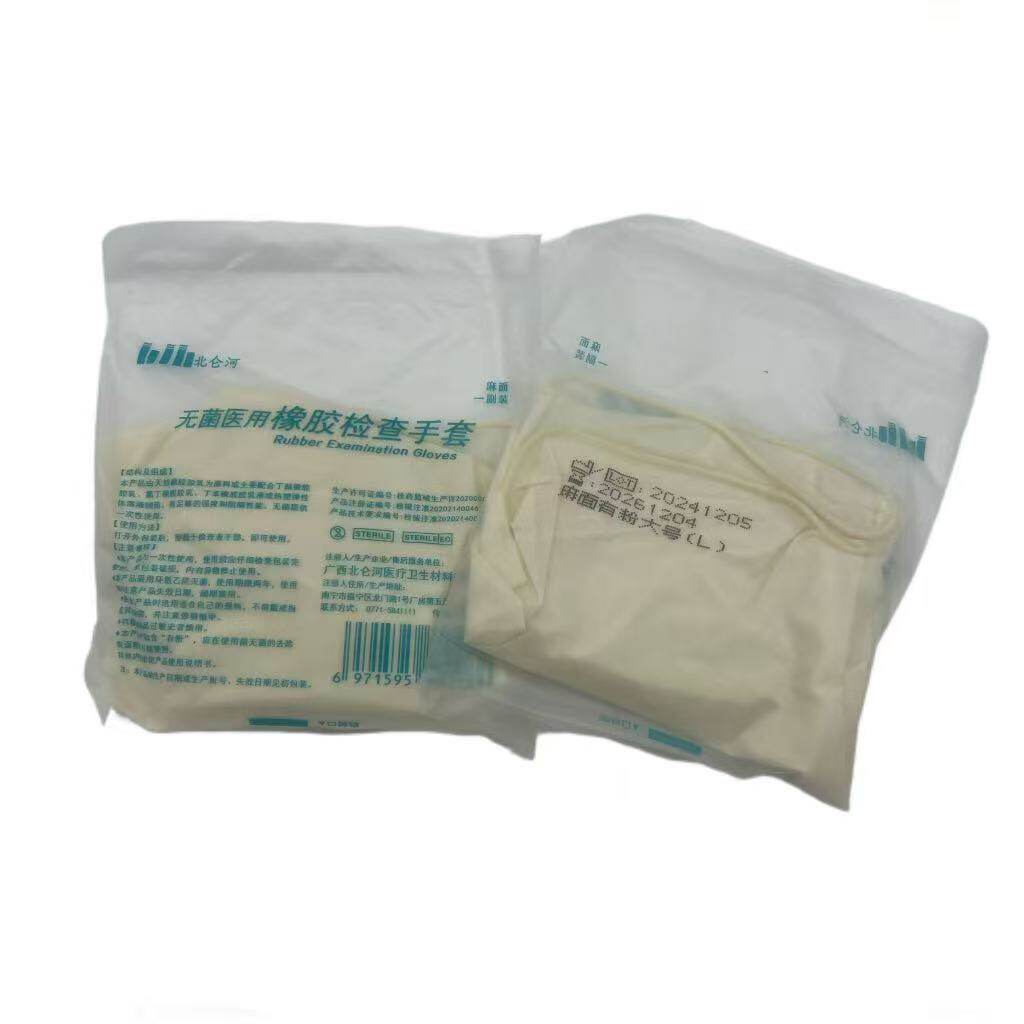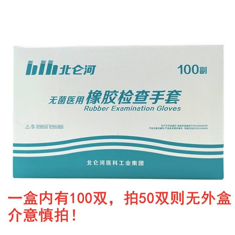 📚 50副装 广西北仑河无菌橡胶检查手套大中小号有粉 北仑河橡胶手套