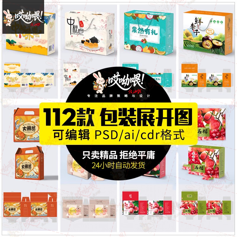 📚 礼盒纸盒手提盒包装展开图创意模板PSD/ai/cdr源文件包装设计素材