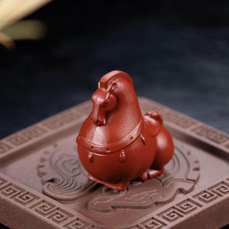 📚 新款直销紫砂唐马茶宠摆件朱泥小茶玩茶具套装大红袍茶宠可养