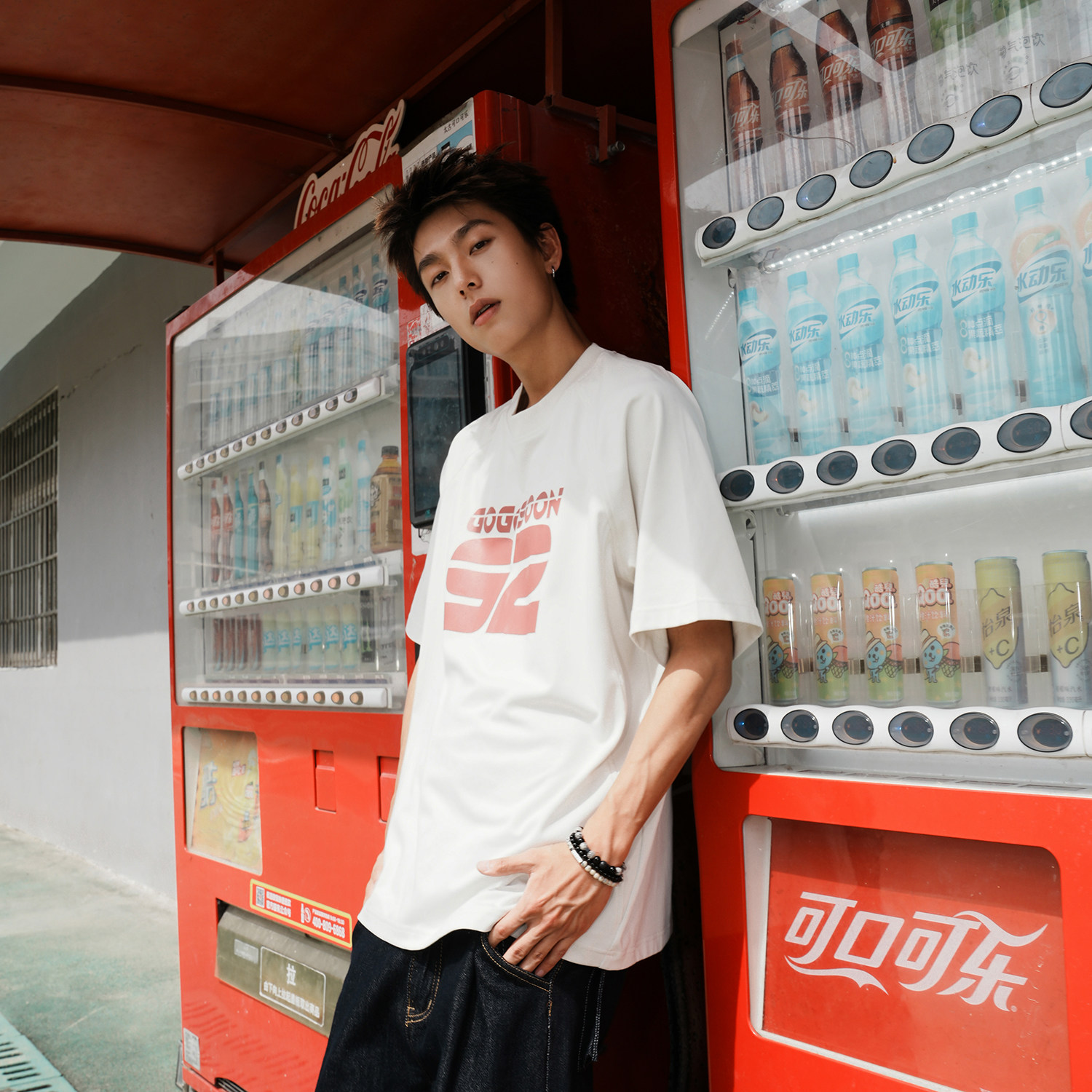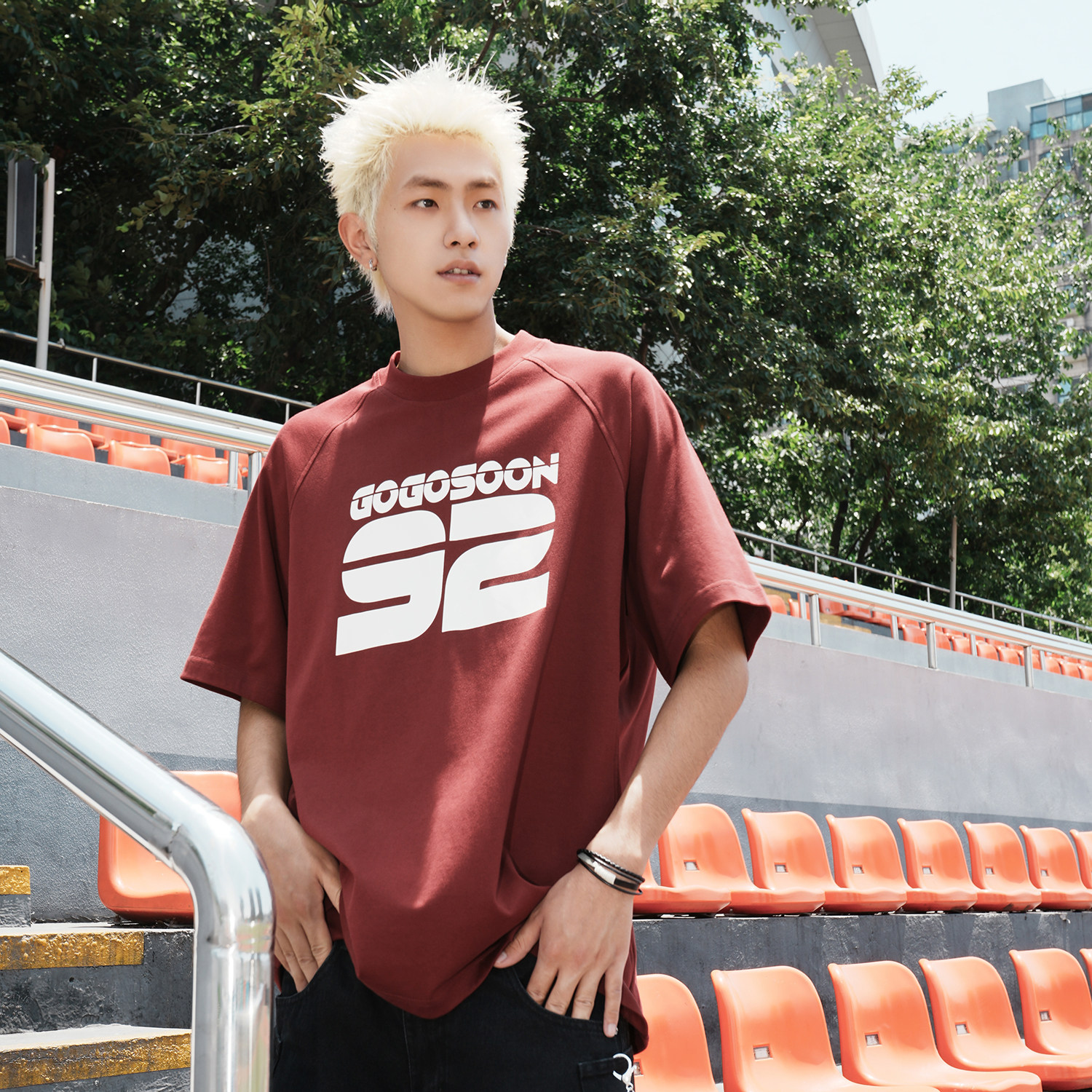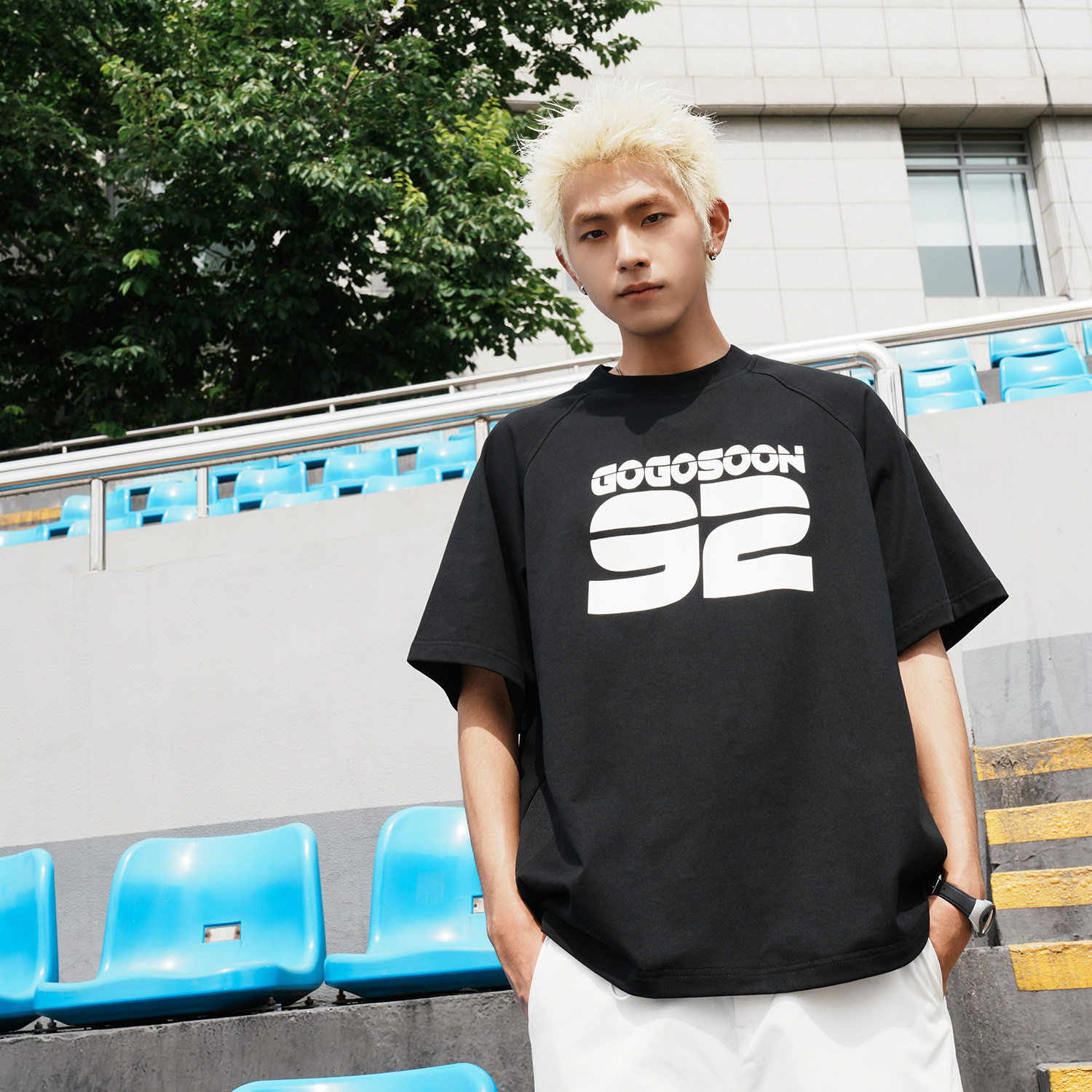 📚 【速干266g凉感透气】男装美式92数字胶印短袖T恤少年感运动夏季Q