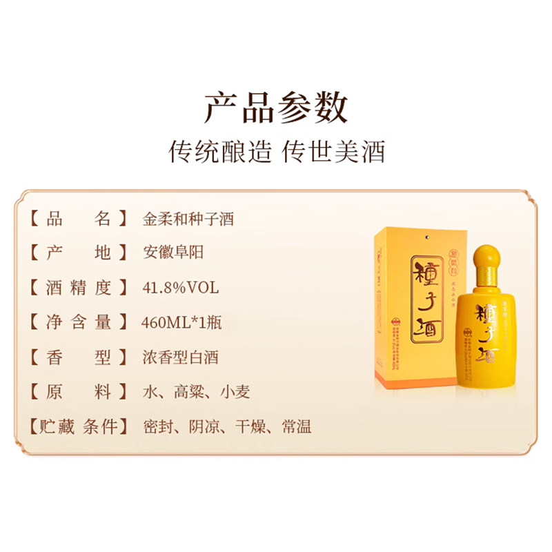 📚 金种子金柔和41.8度浓香型白酒460ml×4瓶整箱礼盒纯粮自饮送礼