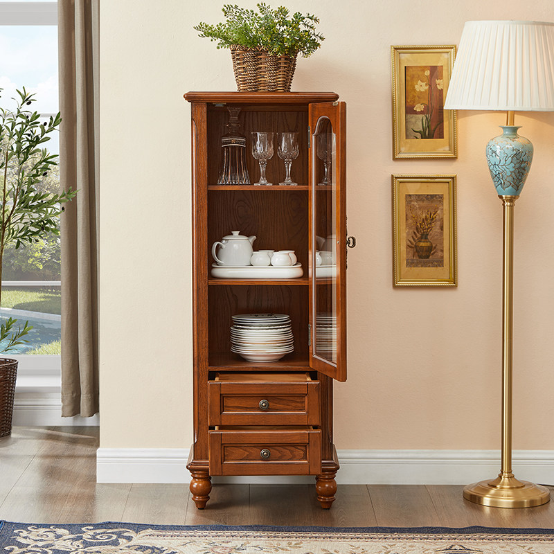 📚 美式实木酒柜玻璃装饰柜展示柜 欧式单门电视边柜靠墙客厅小立柜