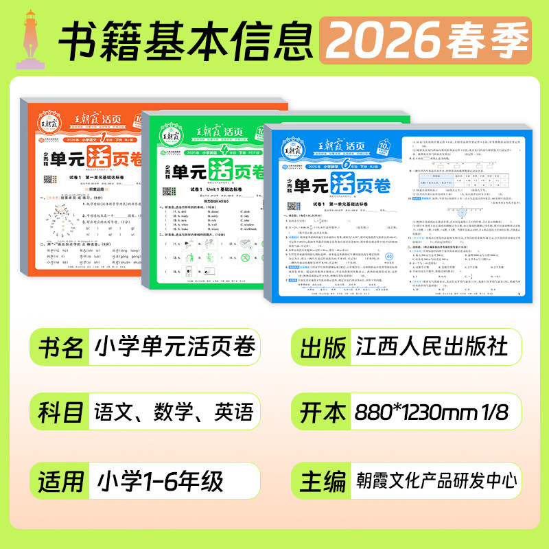 📚 2026春王朝霞活页单元卷一二三四五六年级上下册测试卷语数英人教版北师版苏教版