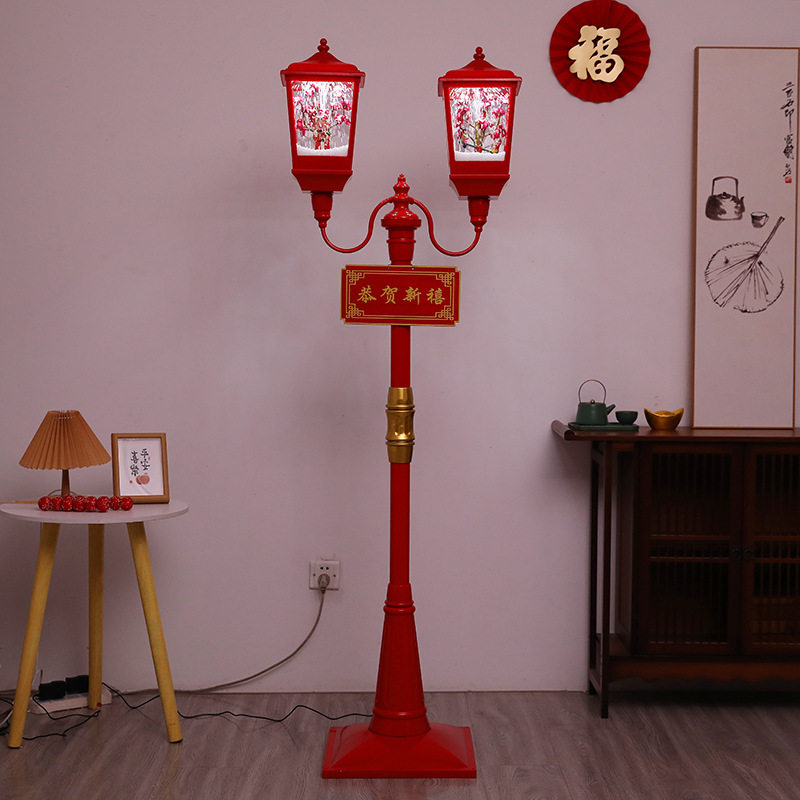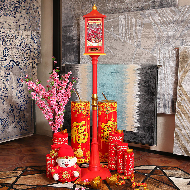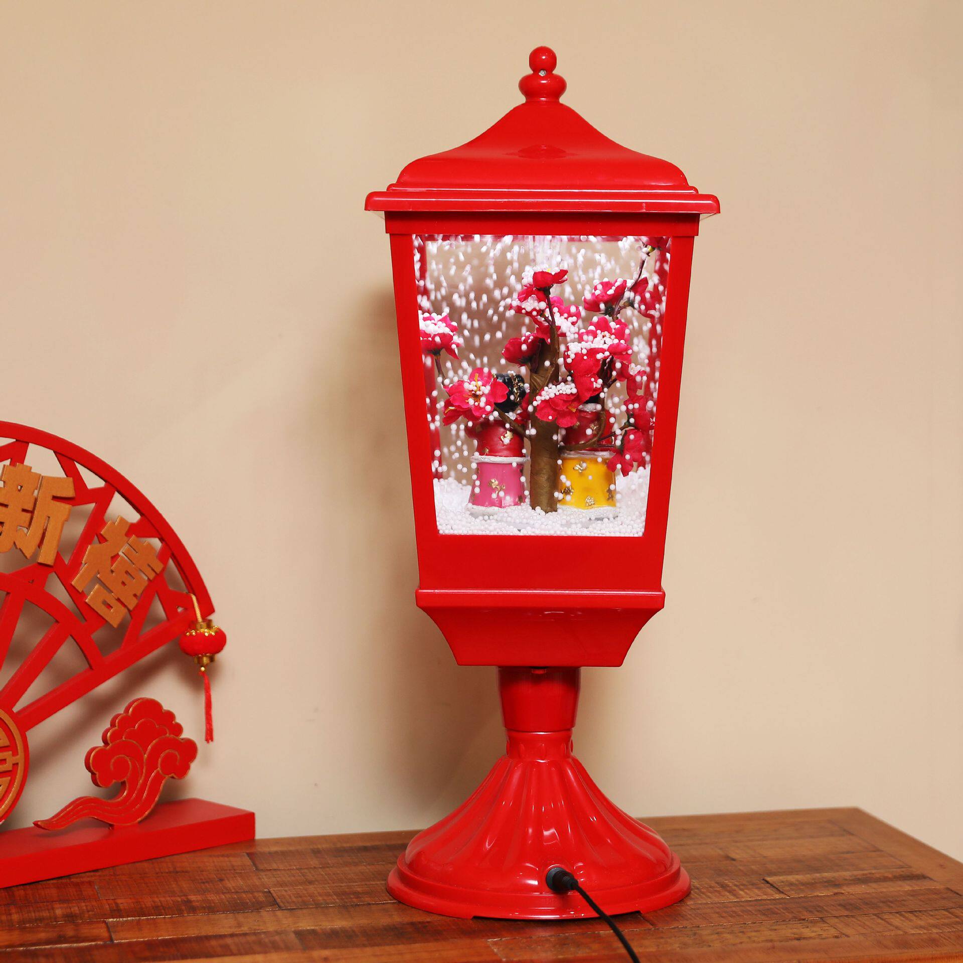 📚 2026马年新年电动飘雪音乐路灯春节炮竹元宝财神桃花礼品坐炮摆件