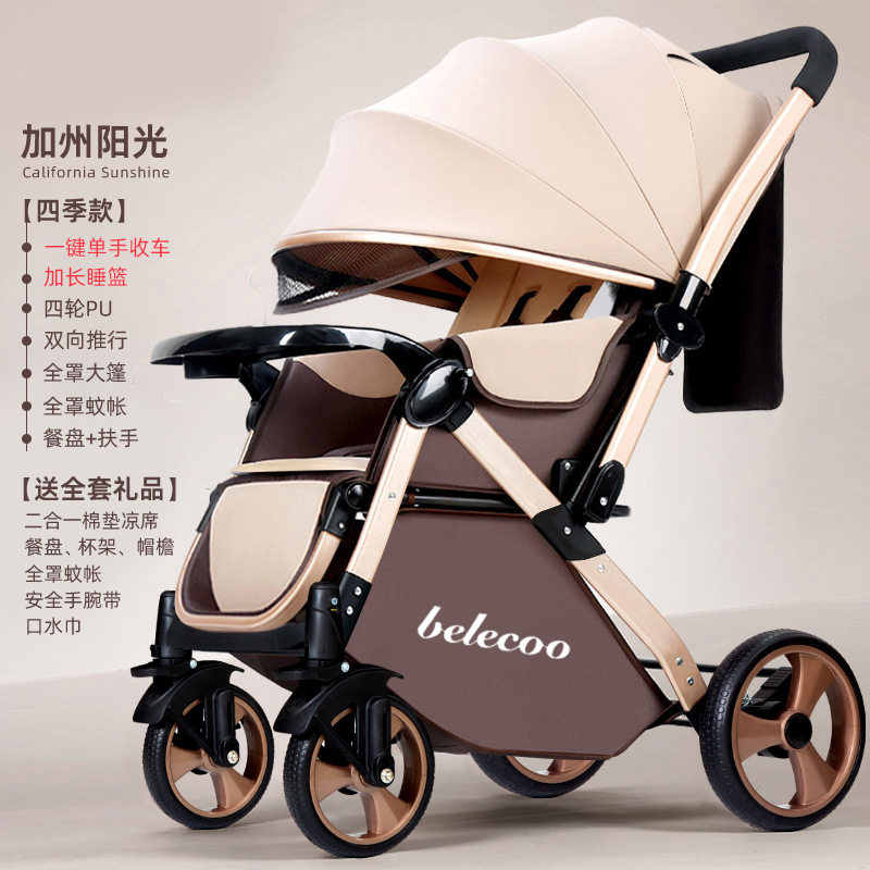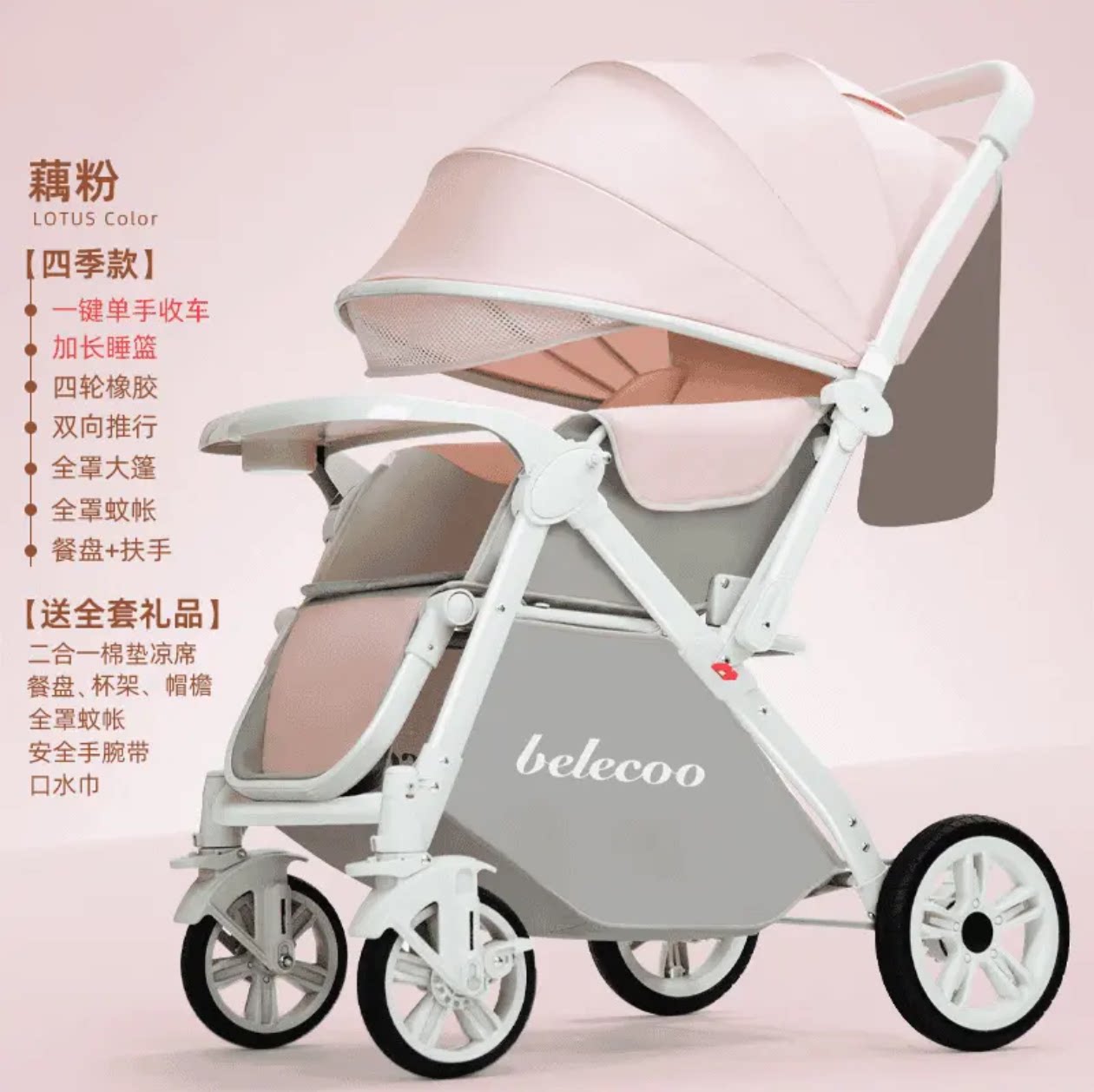 📚 贝丽可奔昂婴儿推车高景观可坐可躺轻便折叠宝宝双向推车四轮减震