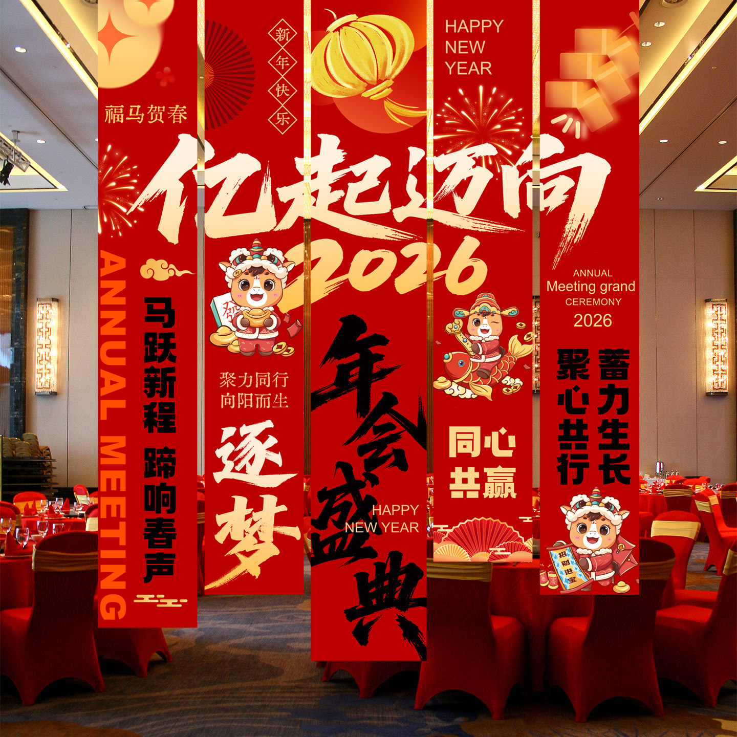 📚 2026年会红色挂布装饰条幅马年春节背景墙布置用品公司企业装饰品