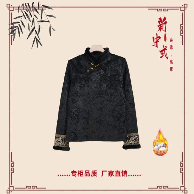 📚 新中式立领毛边提花加绒加厚长袖小衫B国风袖口刺绣百搭打底上衣