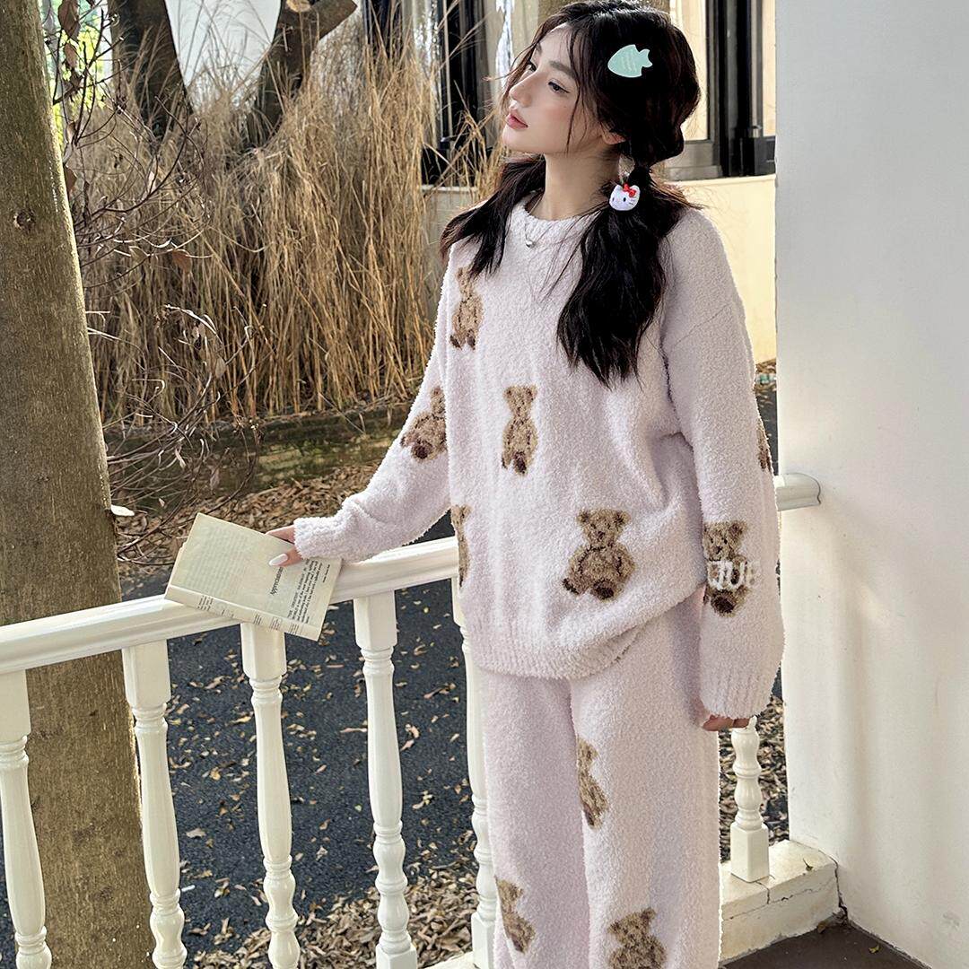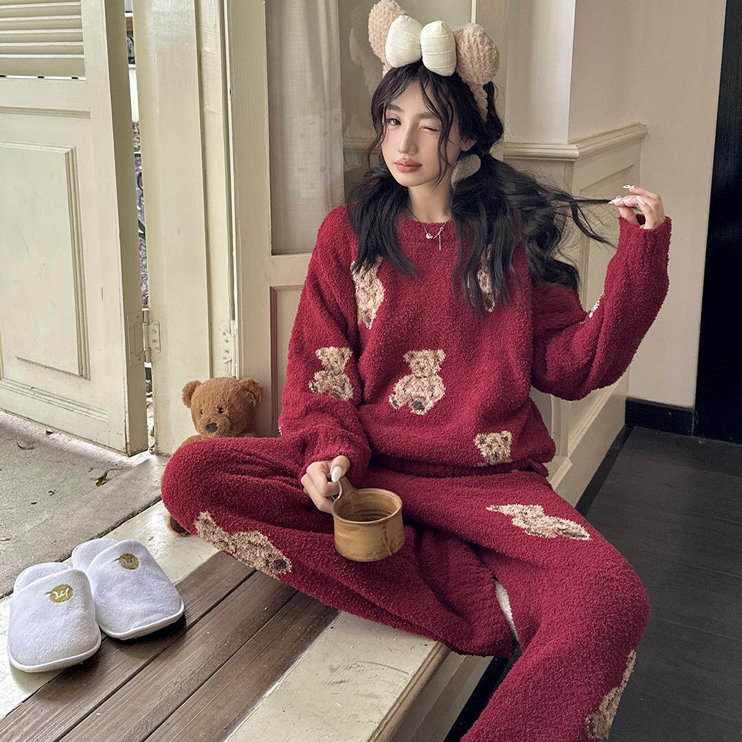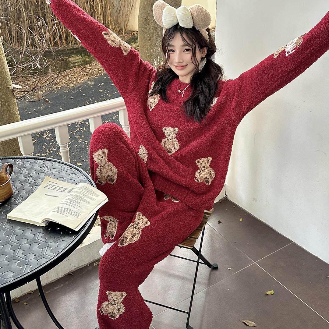 📚 日系卡通多小熊云朵感软绵绵睡衣秋冬加厚保暖圣诞红家居服套装女