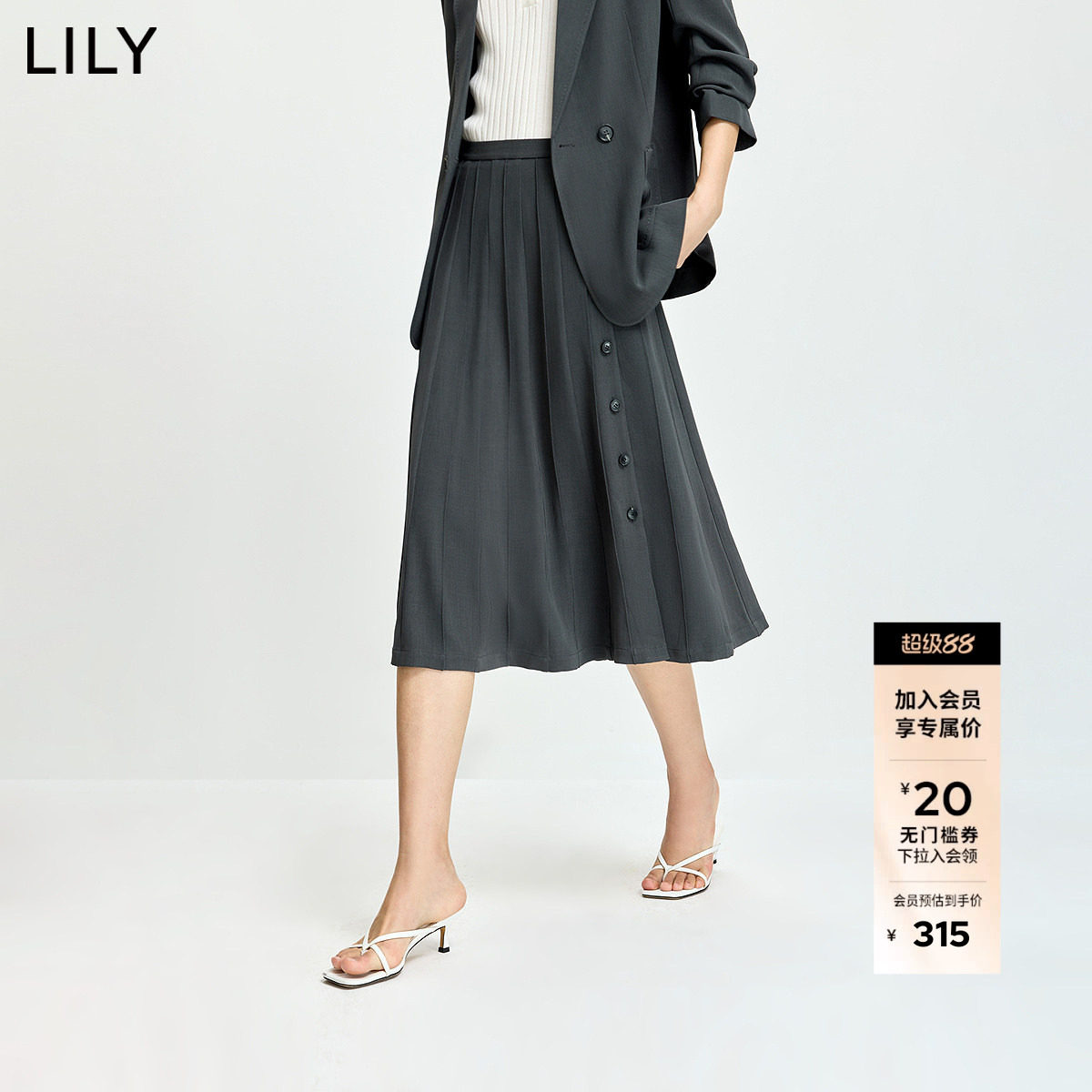 19¥ CA381 ysEk56tbzsi¥ https://m.tb.cn/h.iKbl44d LILY2026夏新款女装格雷系设计感斜门襟宽松灰色A字半身裙百褶裙 --------------------- 【原售价】649元 【现售价】563元。