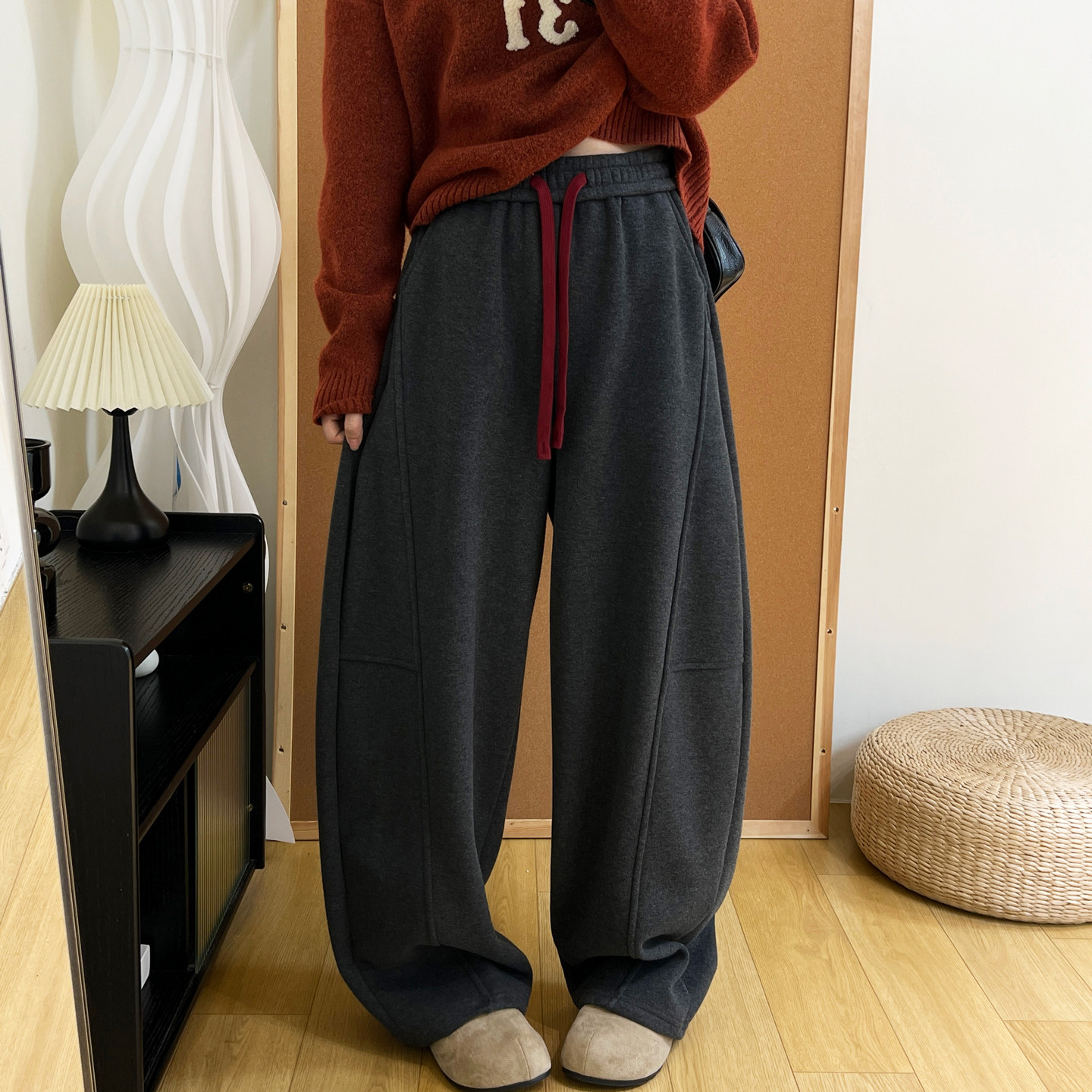 📚 奥粒绒加厚保暖高腰阔腿香蕉裤冬季休闲百搭垂坠感加长弯刀卫裤女