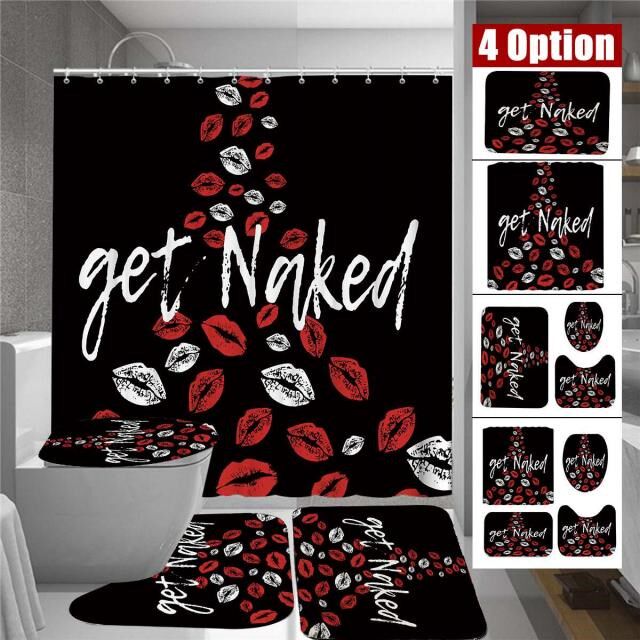📚 Bathroom Set Print Mildew-proof Waterproof Shower Curtain+ N