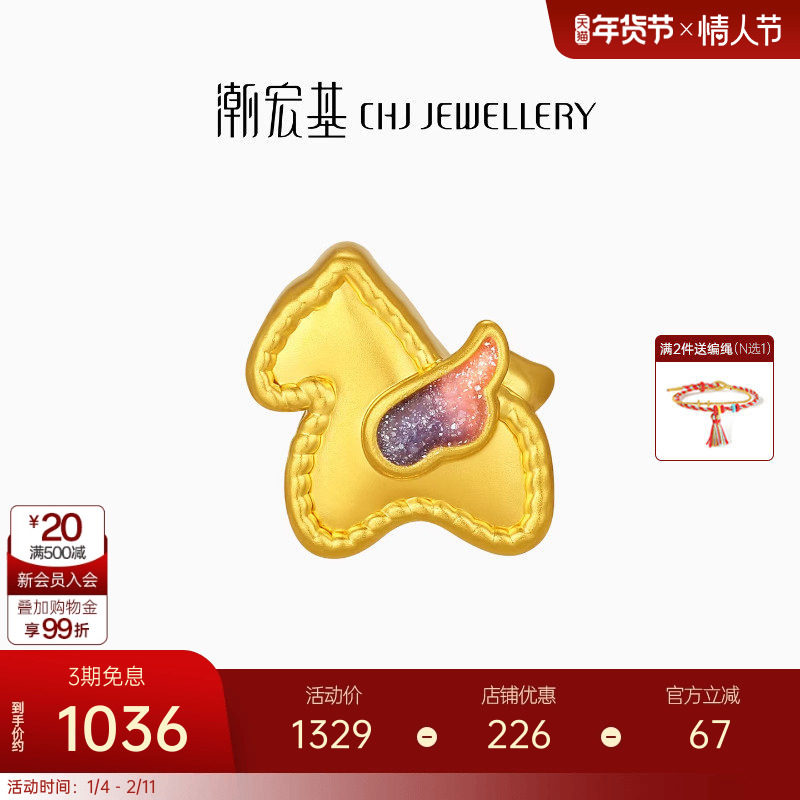 📚 潮宏基好事发生彩虹马足金串珠黄金转运珠5D硬金鎏彩生肖女本命年
