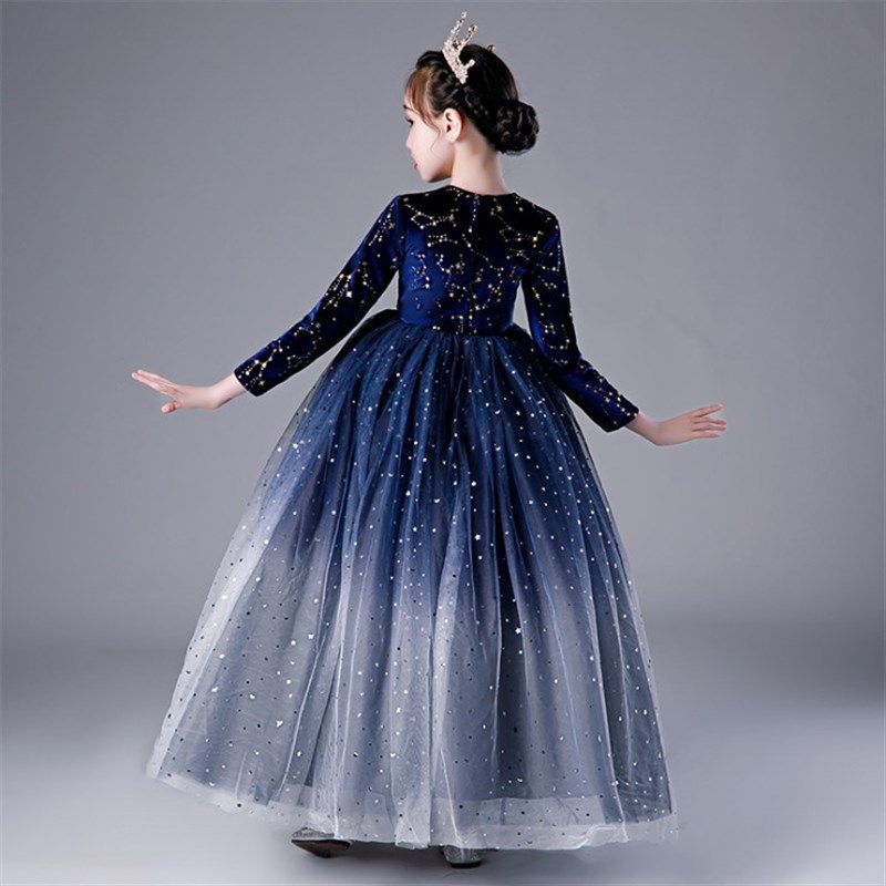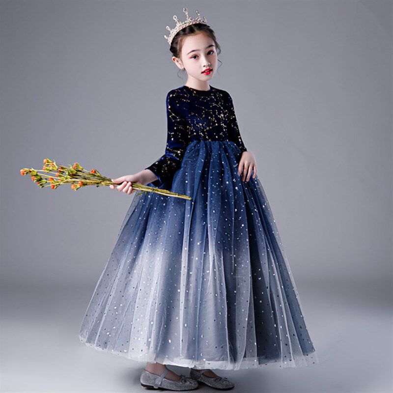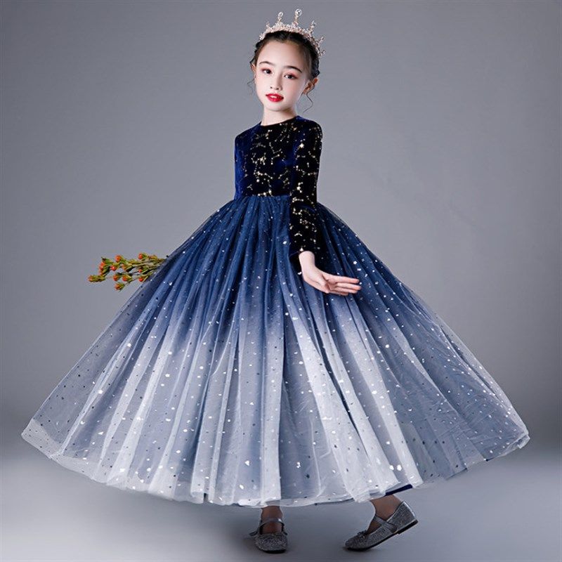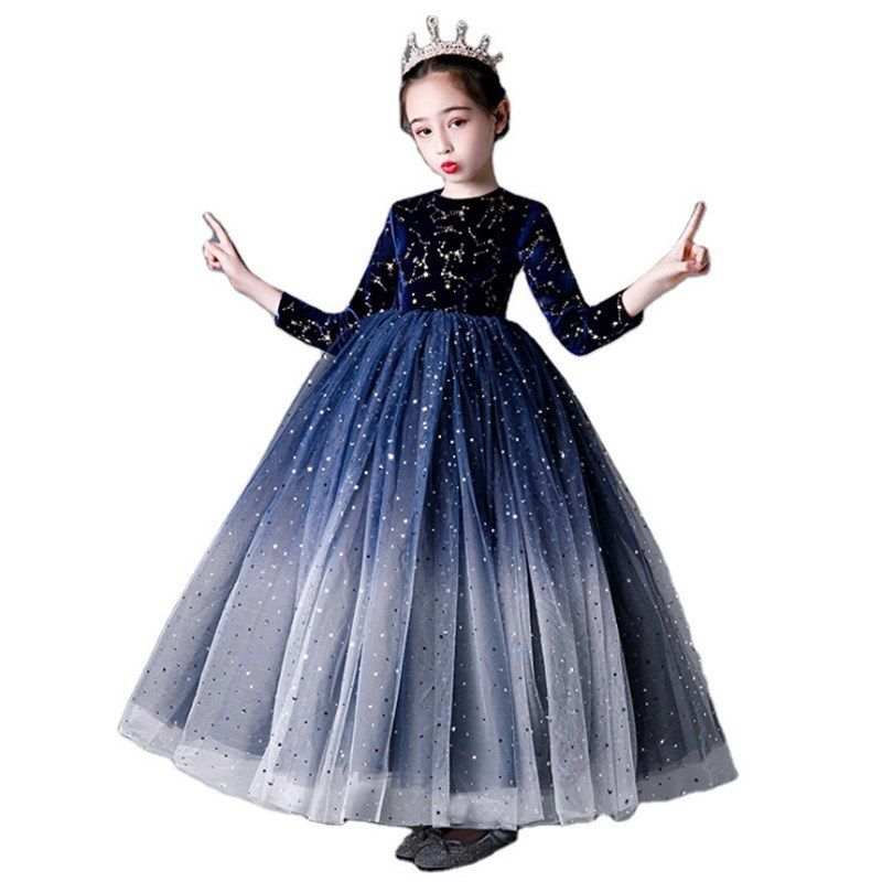 📚 大码女童礼服中小学生显瘦连衣裙气质长裙儿童公主裙钢琴主持人蓝