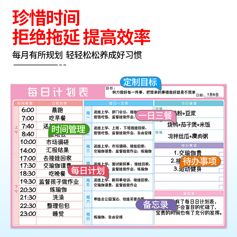 📚 优选每日计划表墙贴儿童自律打卡日程时间安排作息表家庭好习惯养