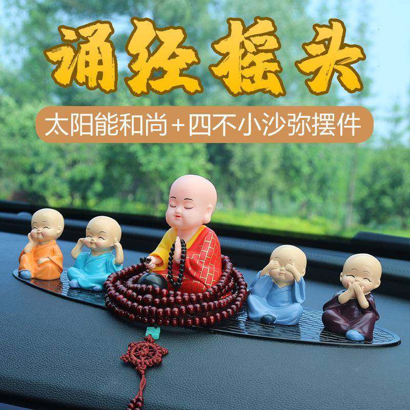 📚 中式太阳能诵经袈裟和尚汽车摆件车载内饰品禅意小沙弥中控台装品