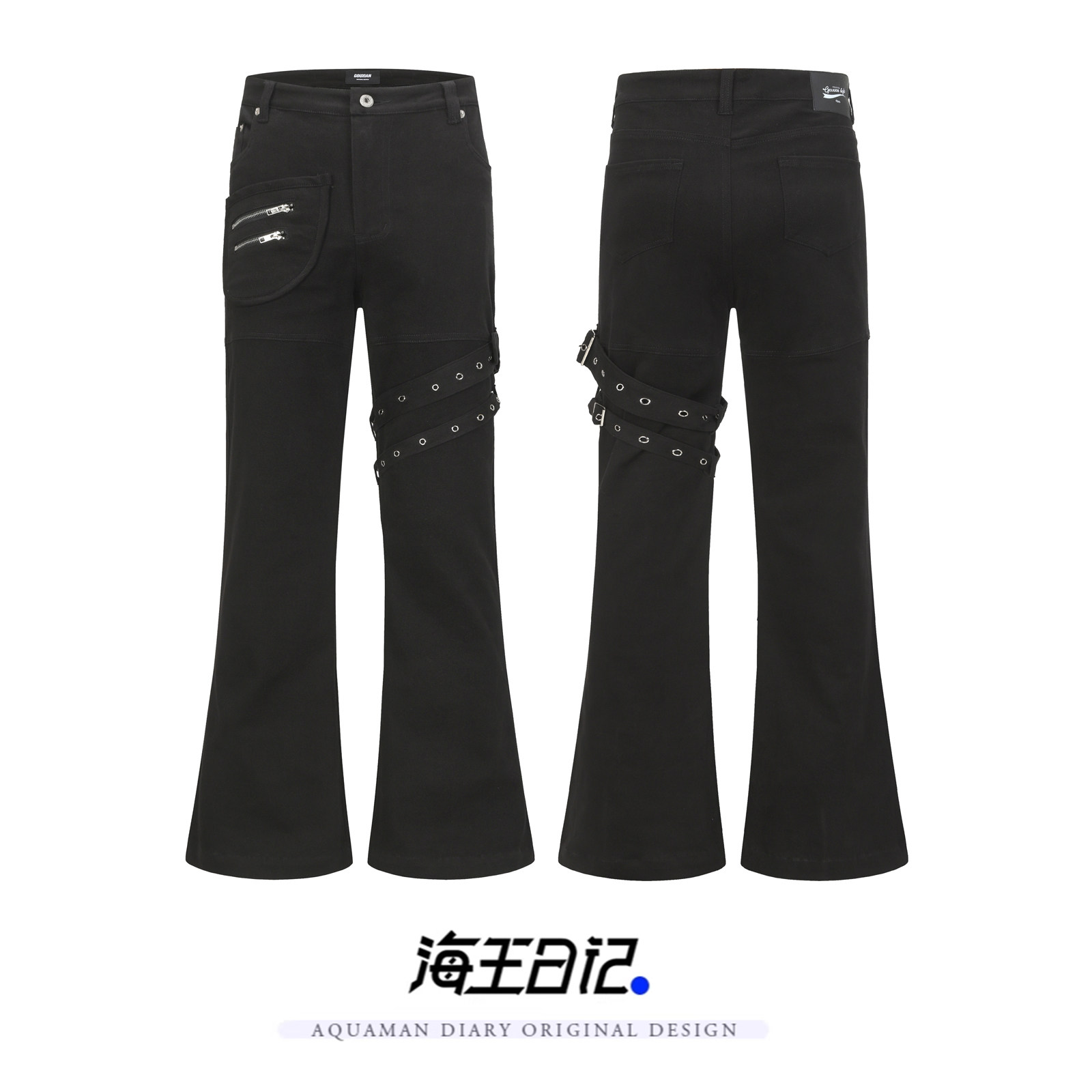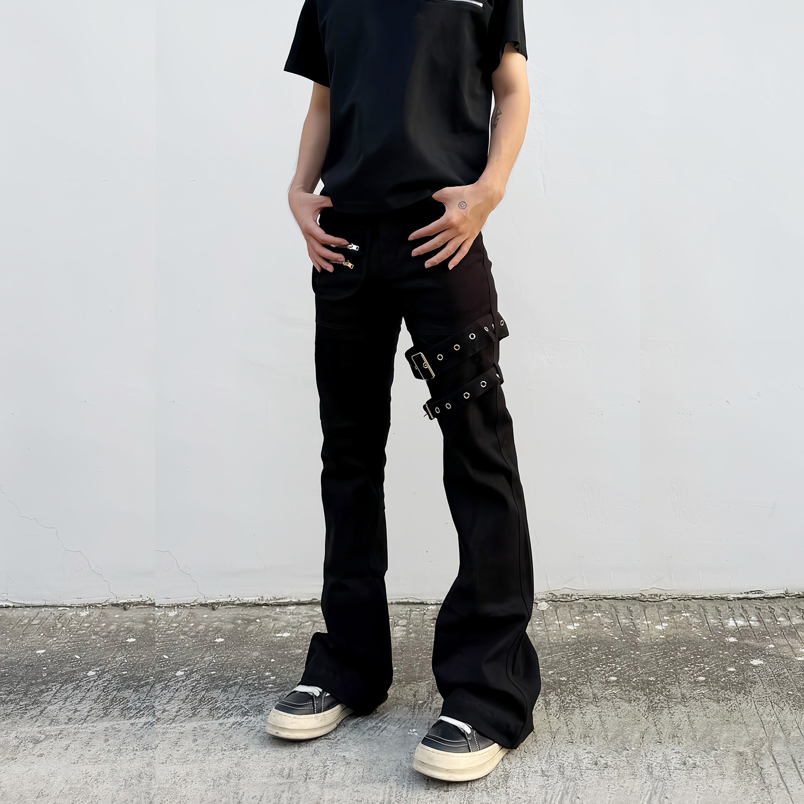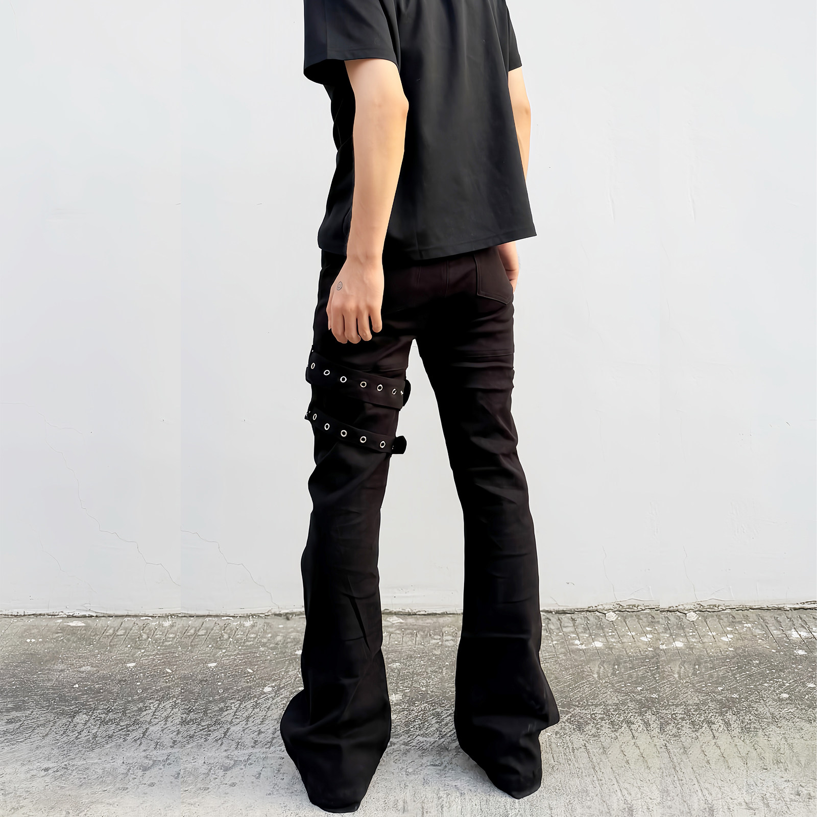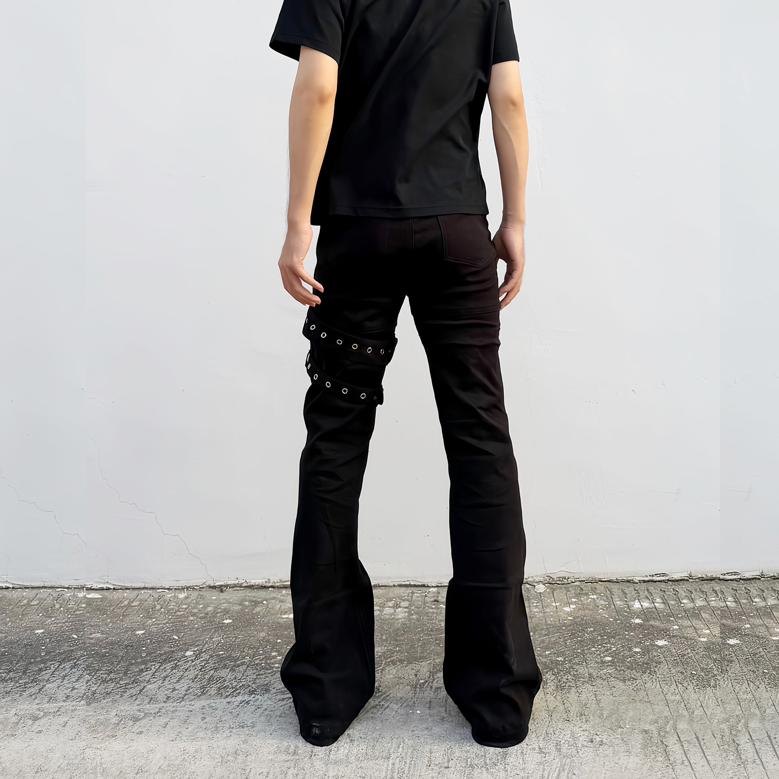 📚 海王日记枪套裤绑带美式vibe黑色微喇休闲设计感显瘦修身男裤子