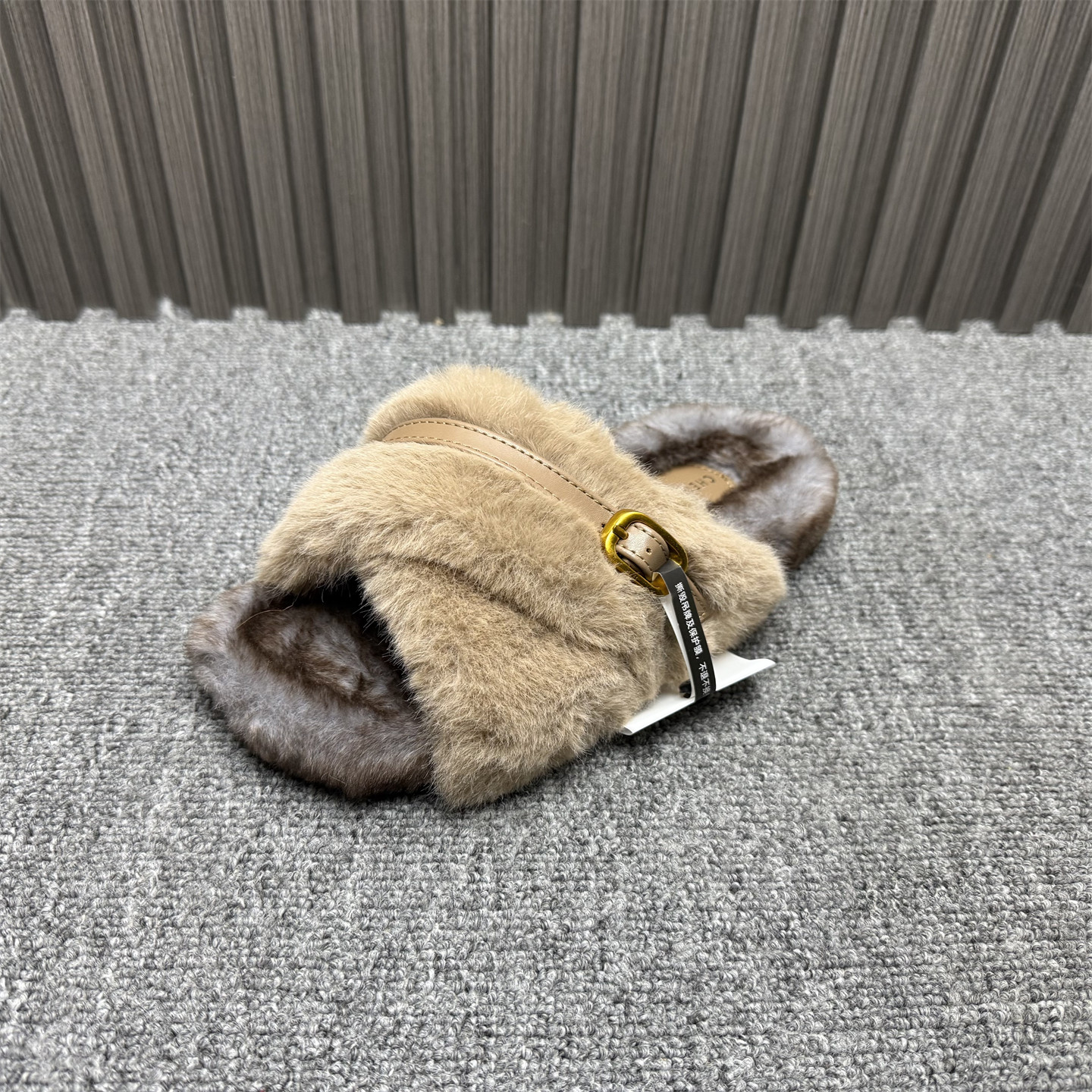 📚 35码处理清仓拖鞋女冬季新款防滑交叉毛绒舒适加绒时尚露趾毛毛鞋