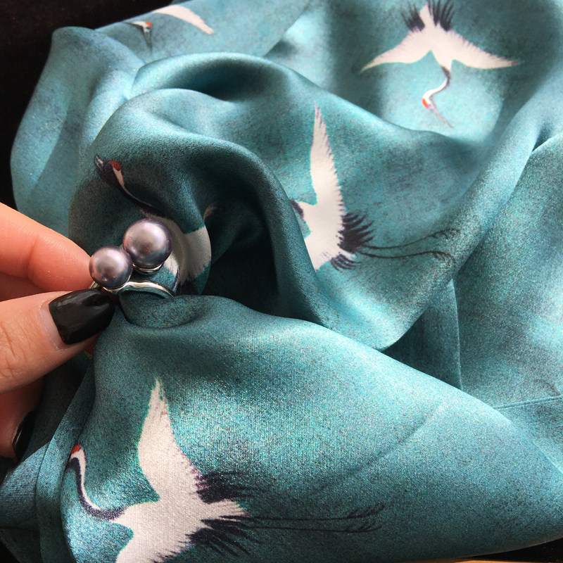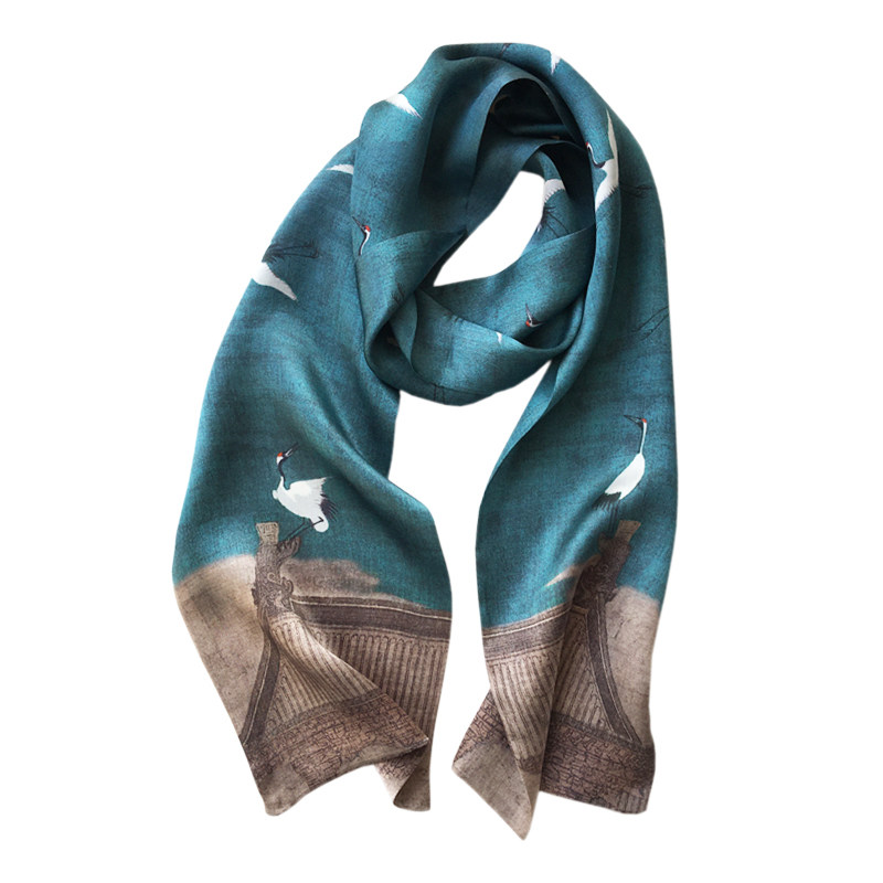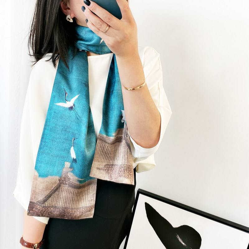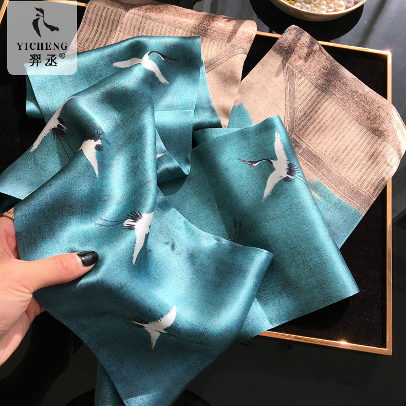 📚 【瑞鹤图】优雅中国风100%桑蚕丝双面长条丝巾时尚真丝飘带围巾女