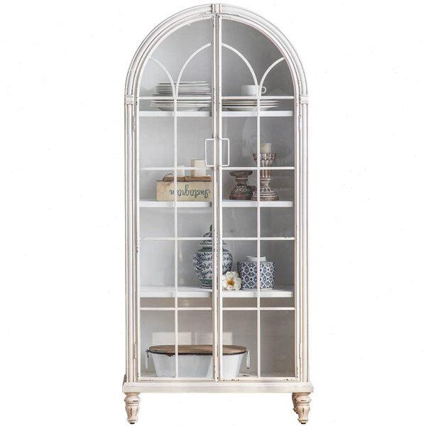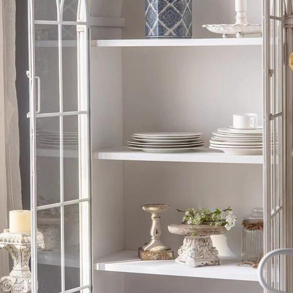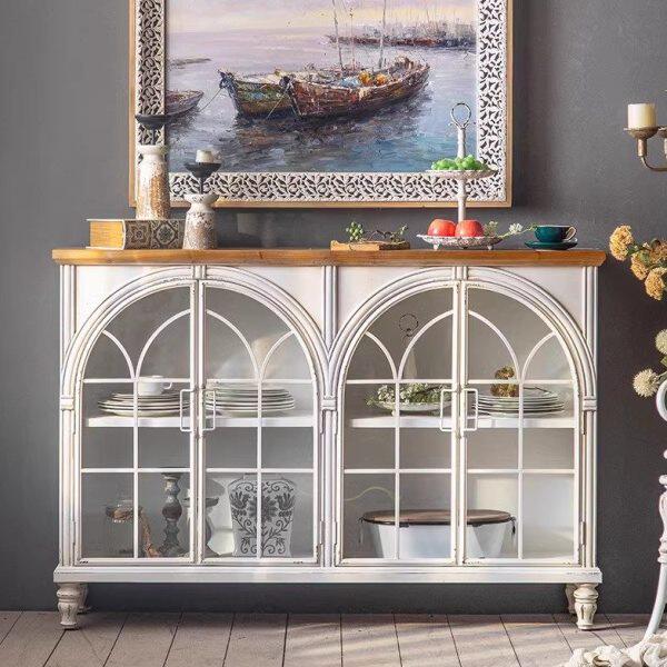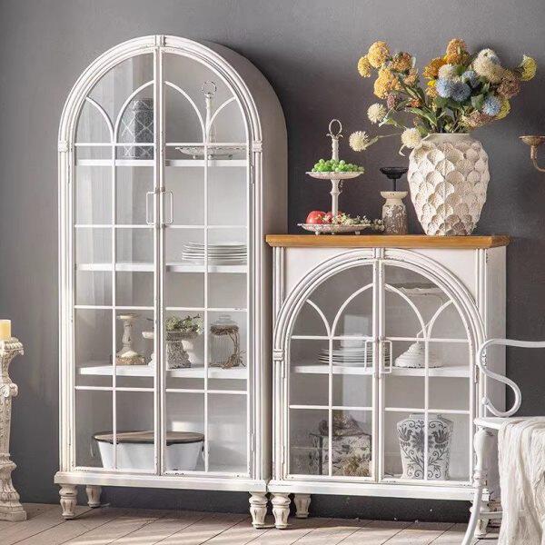 📚 法式餐边柜白色复古玻璃柜子展示柜家用客厅靠墙落地实木拱形书柜
