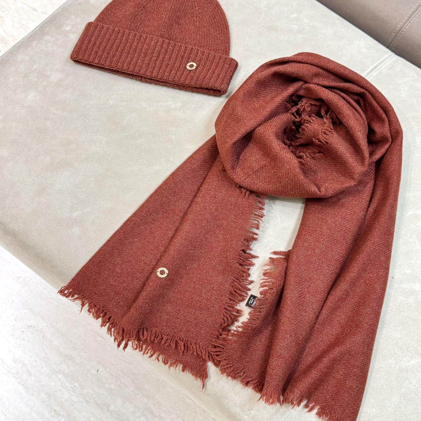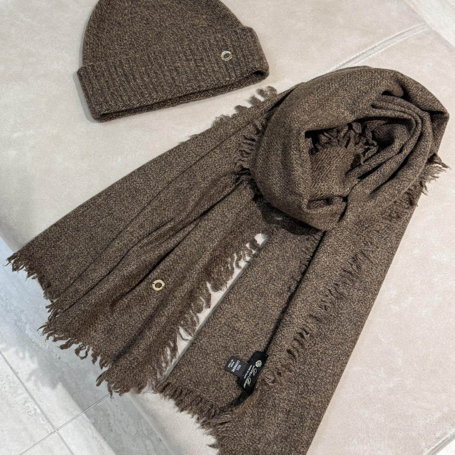 📚 意大利秋冬新款LP高端文艺范100%纯羊绒细腻保暖围巾帽子百搭套装