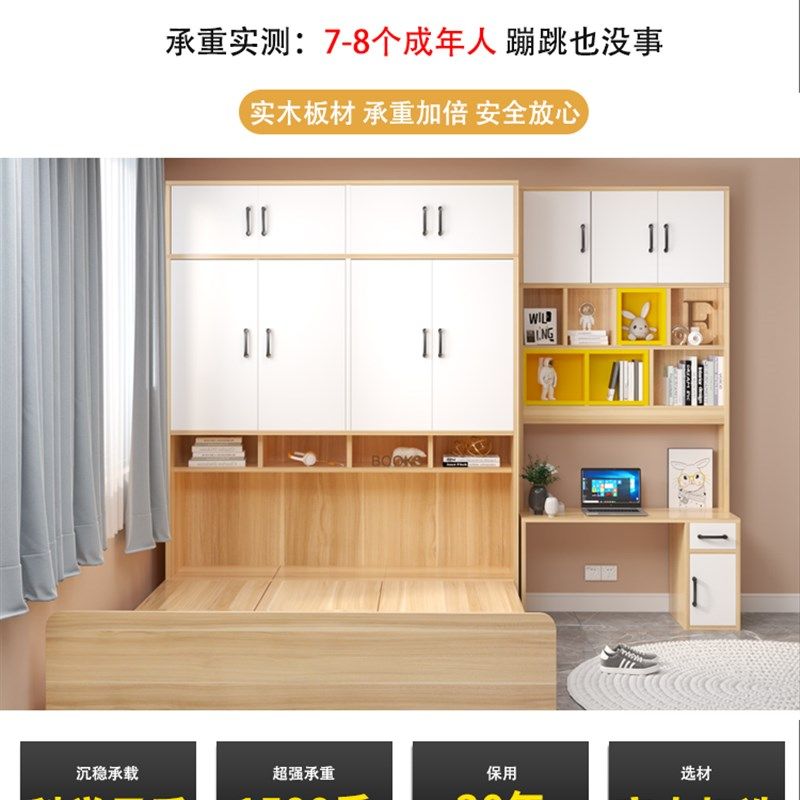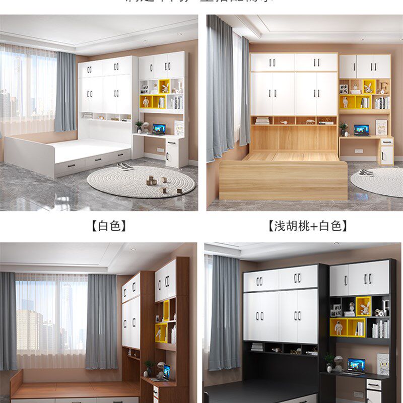 📚 简约实木榻榻米衣柜床一体1.2米1.5小户型镂空省空间储物床可定制
