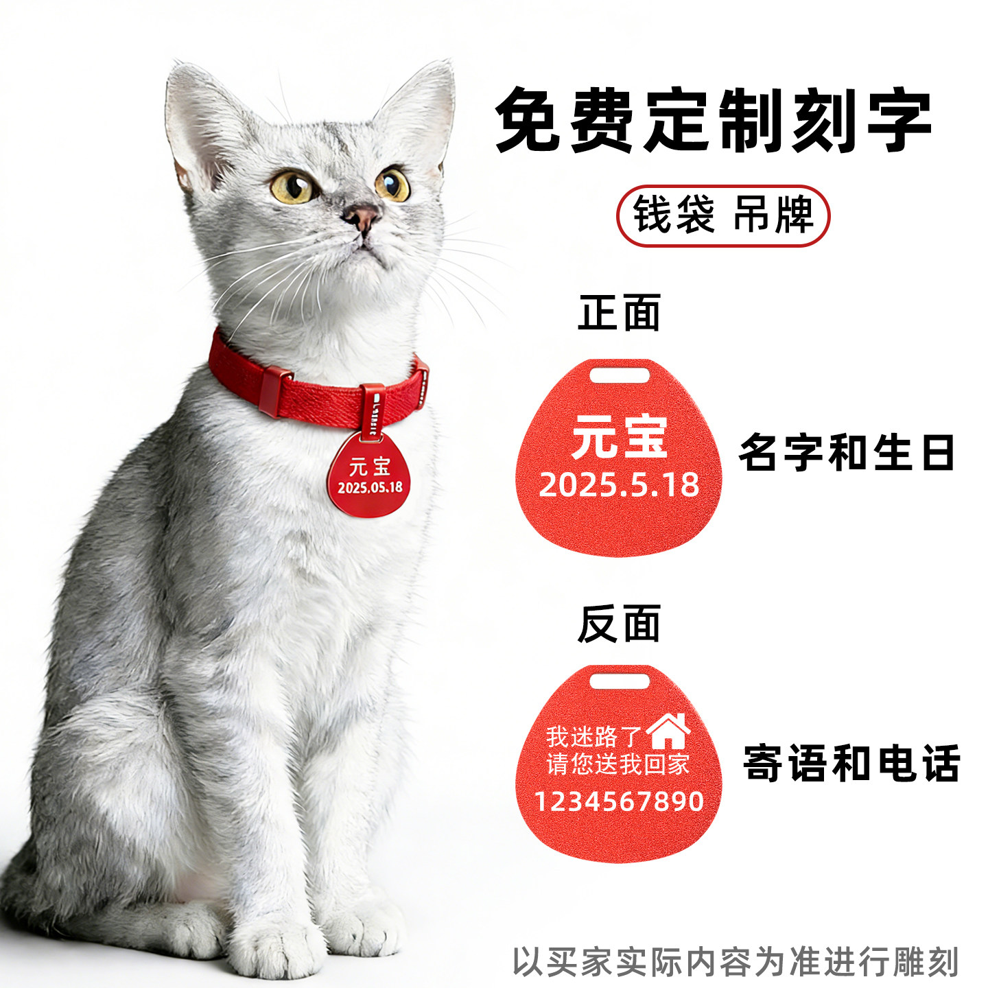 📚 安全猫项圈定制可调节弹力轻型颈脖圈宠物身份刻字轻型猫咪吊牌