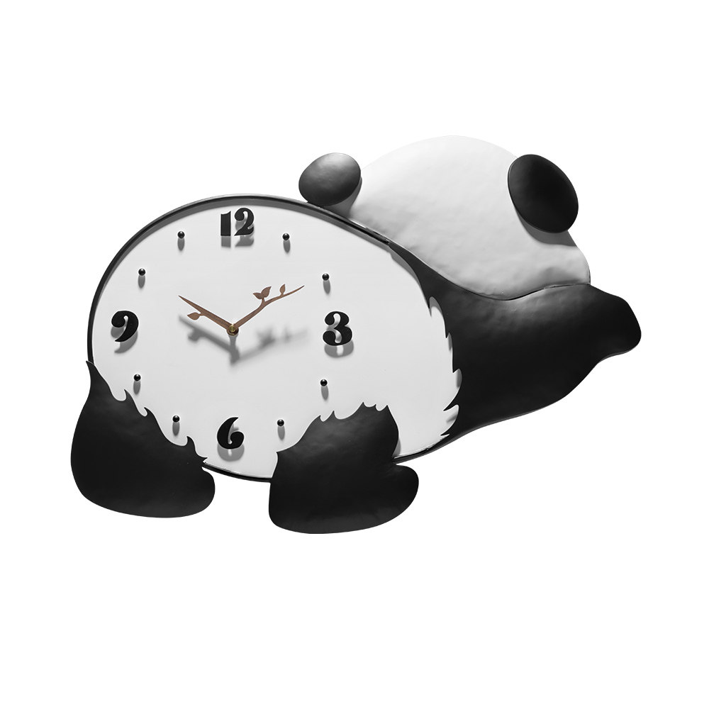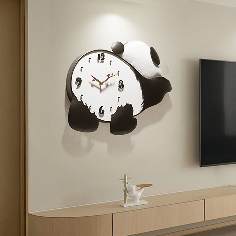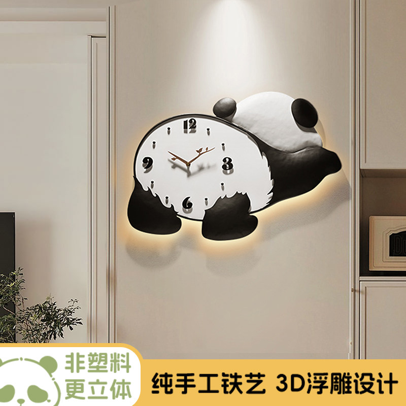 📚 熊猫萌兰客厅挂钟2026新款免打孔创意时钟壁灯静音电视背景墙挂钟