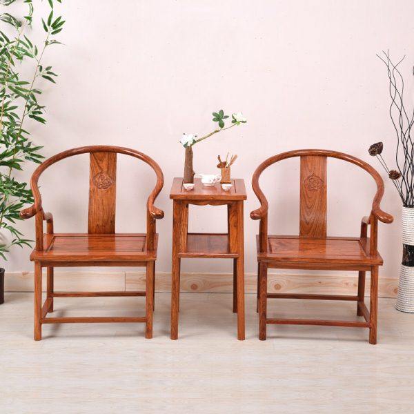 📚 花梨木圈椅三件套红木茶椅新中式实木太师椅仿古围椅茶桌主人椅子