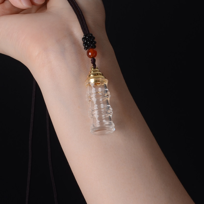 📚 天然白水晶舍利子瓶塔吊坠竹节舍利塔朱砂许愿瓶挂件可打开